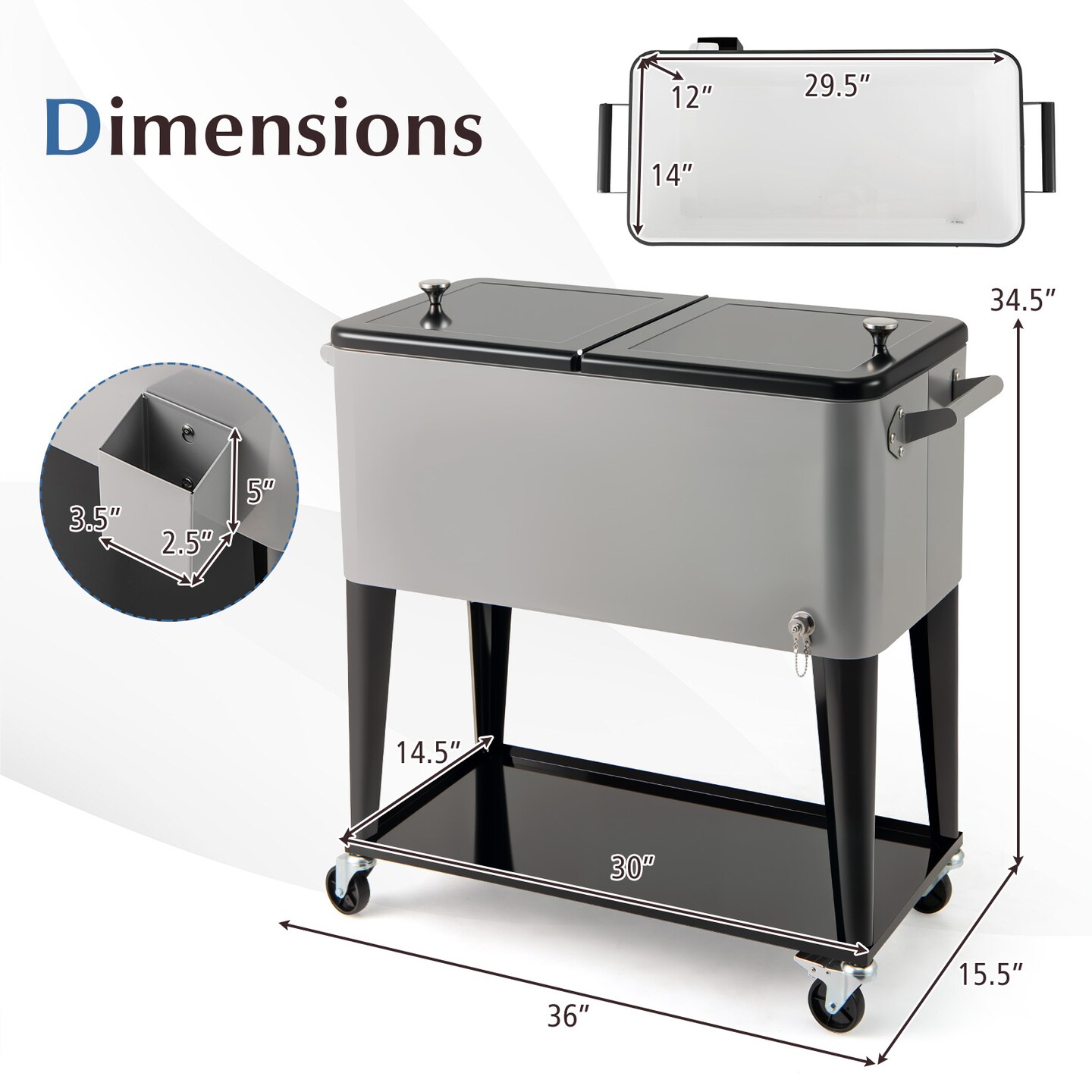 Outdoor Patio Cooler with Wheels, Shelf, and Bottle Opener