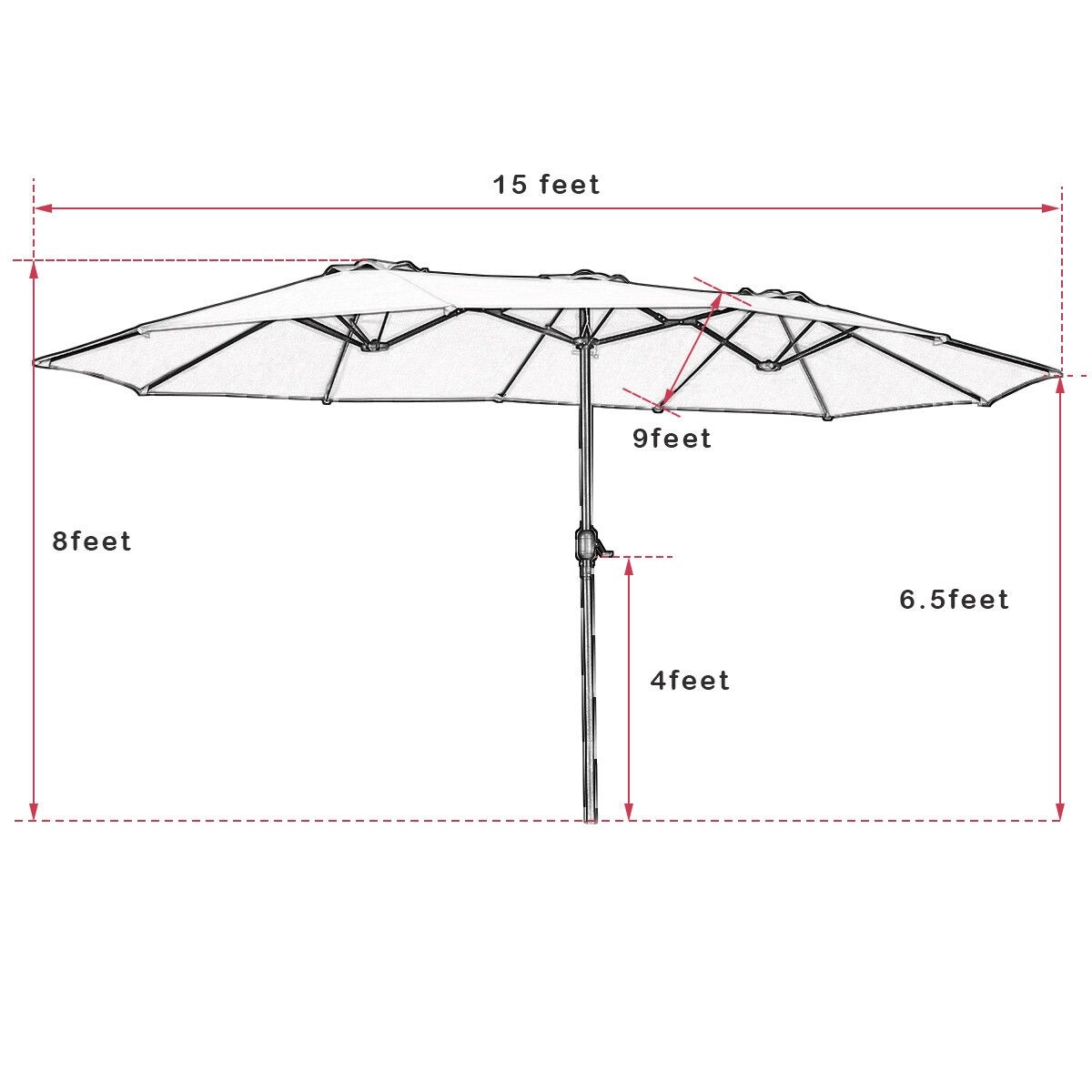 Outdoor Patio Double-Side Umbrella Steel Pole 12 Ribs Fade-Resistant Canopy