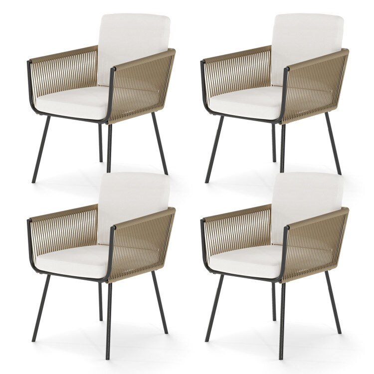 Outdoor PE Rattan Dining Chairs with Cushions Light Brown Wicker Patio Chairs with Metal Frame
