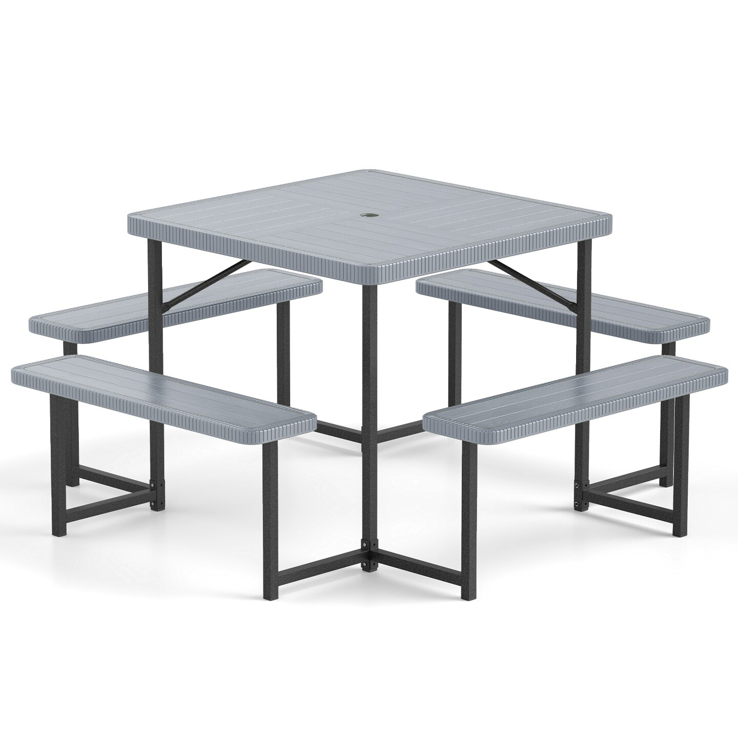 Outdoor Picnic Table Set for 4-8 with Umbrella Hole and Weatherproof Benches