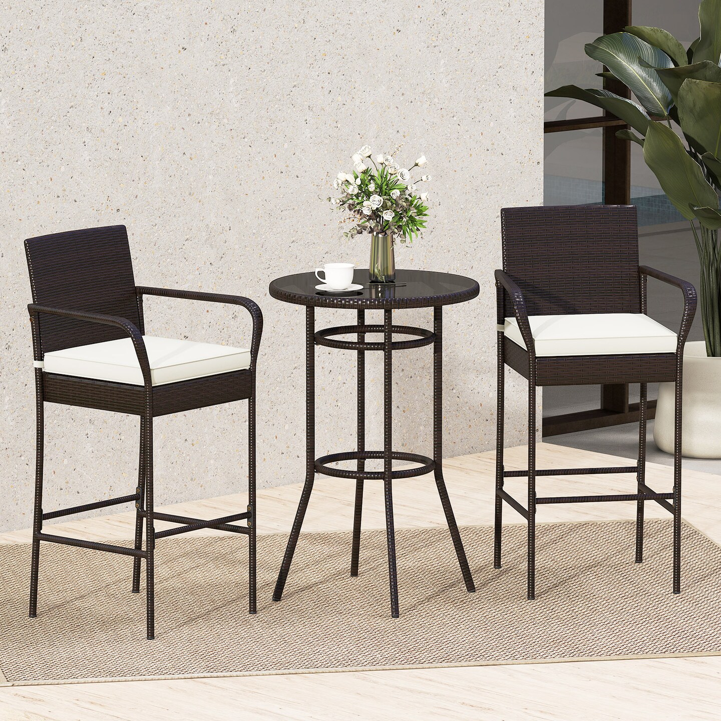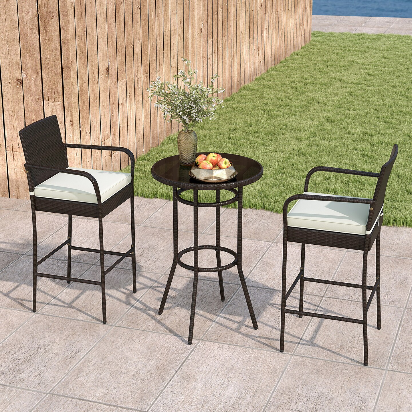 Outdoor Rattan Bar Height Table and Chair Set with 2 Cushions
