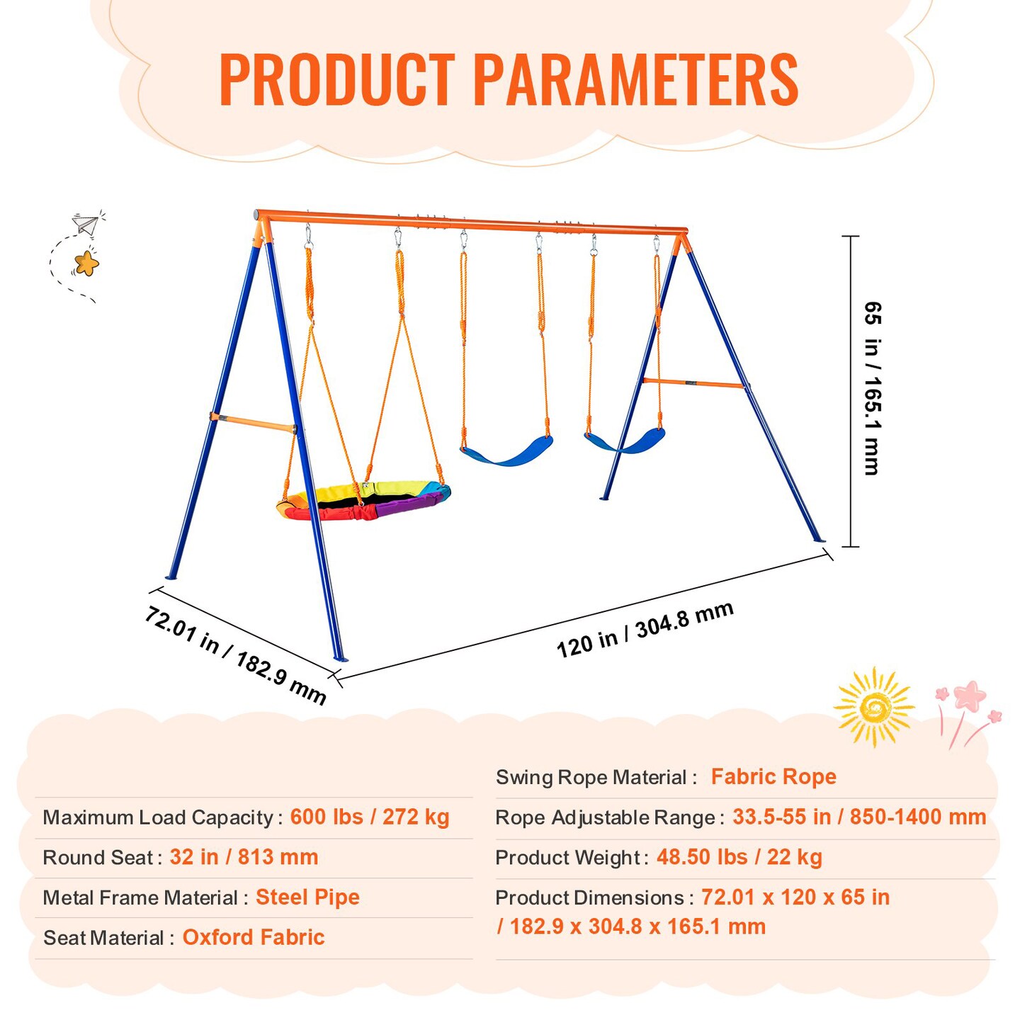 Outdoor Swing Set Metal A Frame with Saucer Seat and Belt Seats for Kids