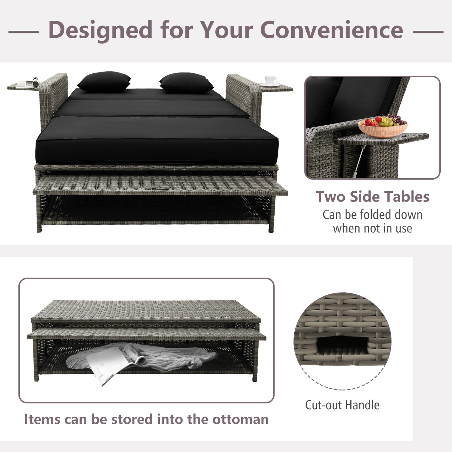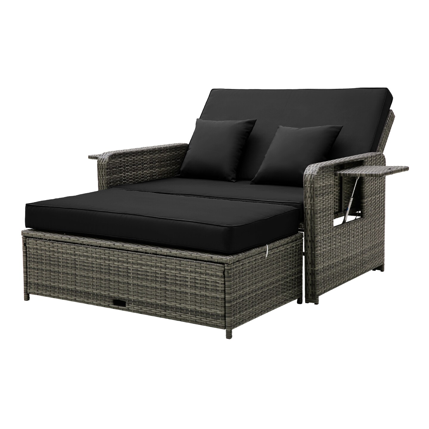 Outdoor Wicker Loveseat with Adjustable Backrest and Storage Ottoman