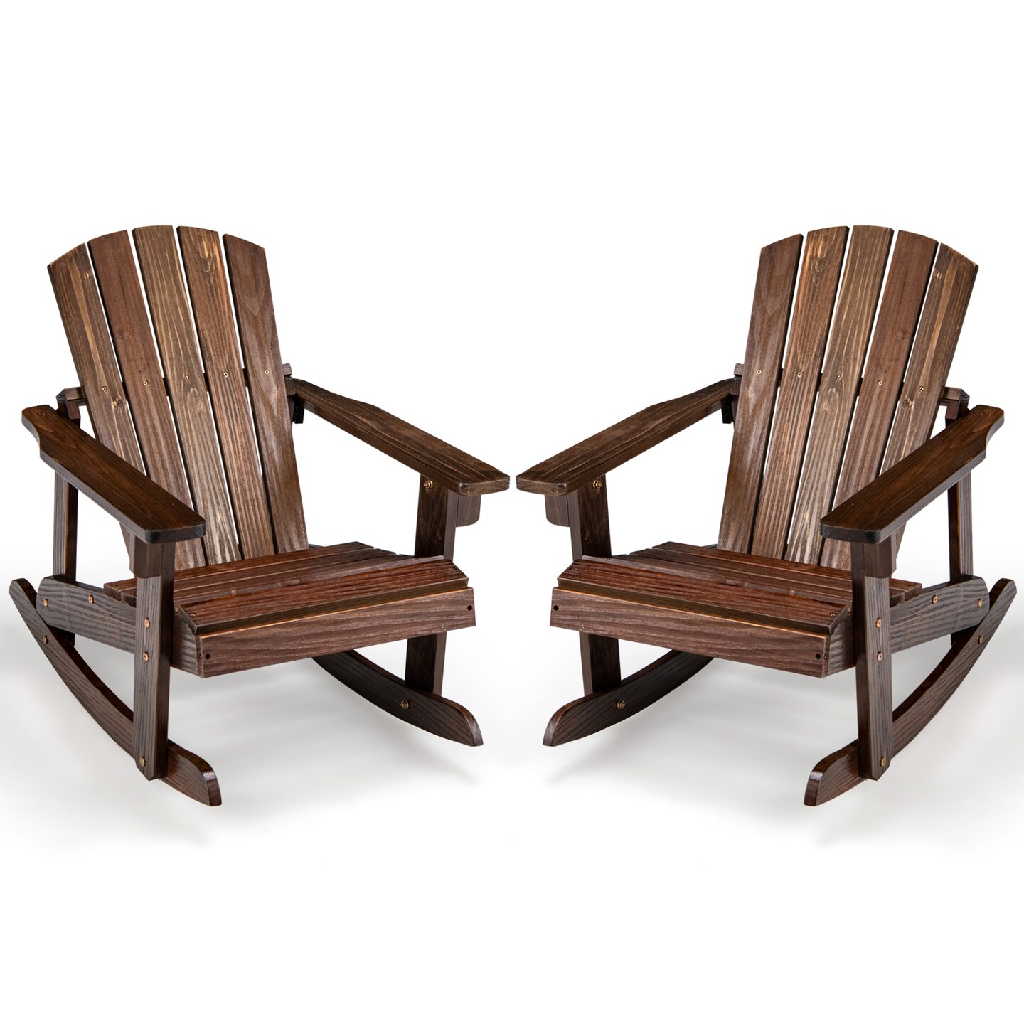 Outdoor Wooden Kid Adirondack Rocking Chair with High Back Slatted Seat