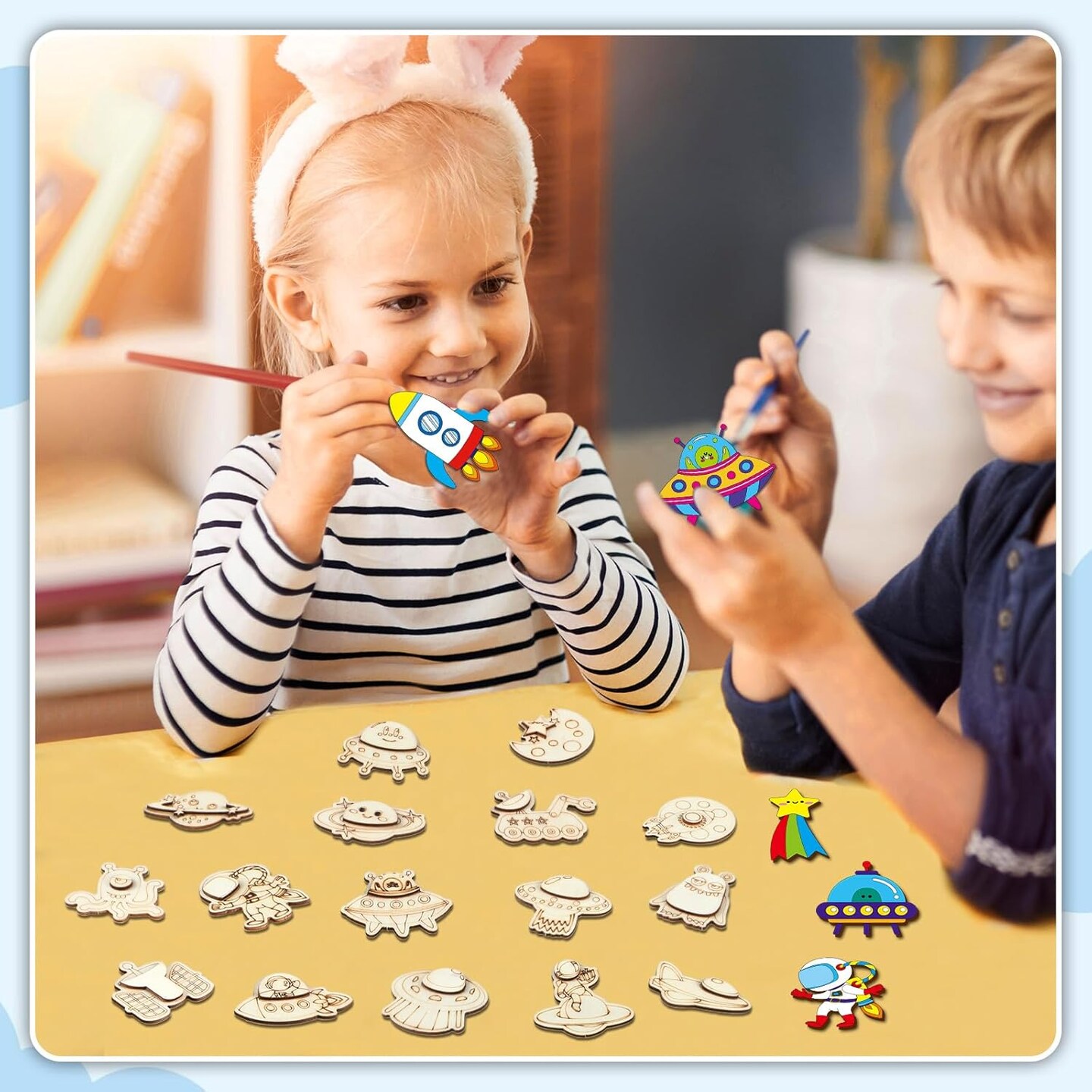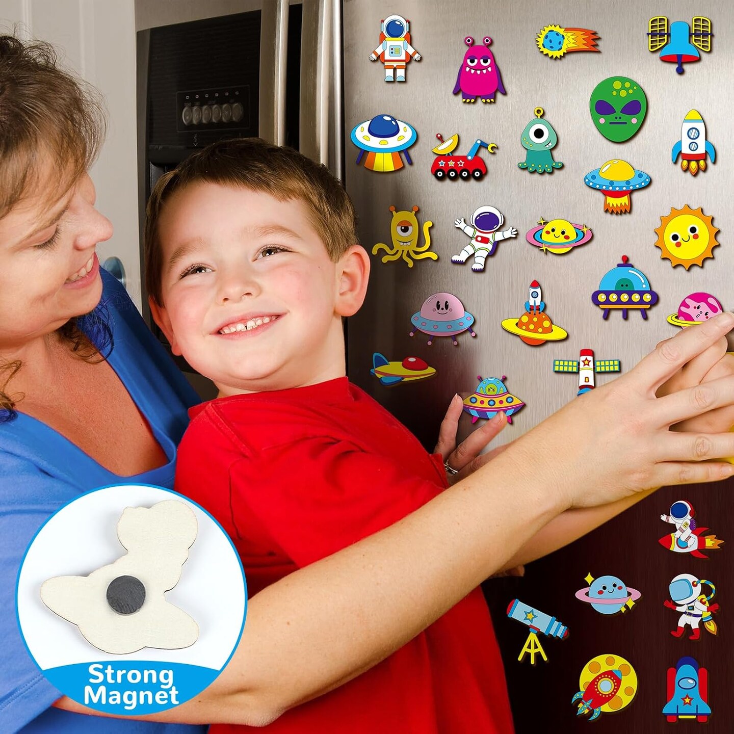 Outer Space Wooden Magnet Painting Craft Kit – 36 PCS DIY Astronaut Art Set for Kids, Creative Painting Supplies for Boys & Girls, Party Favors, Birthday & Summer Gifts (Ages 4–8, 8–12)