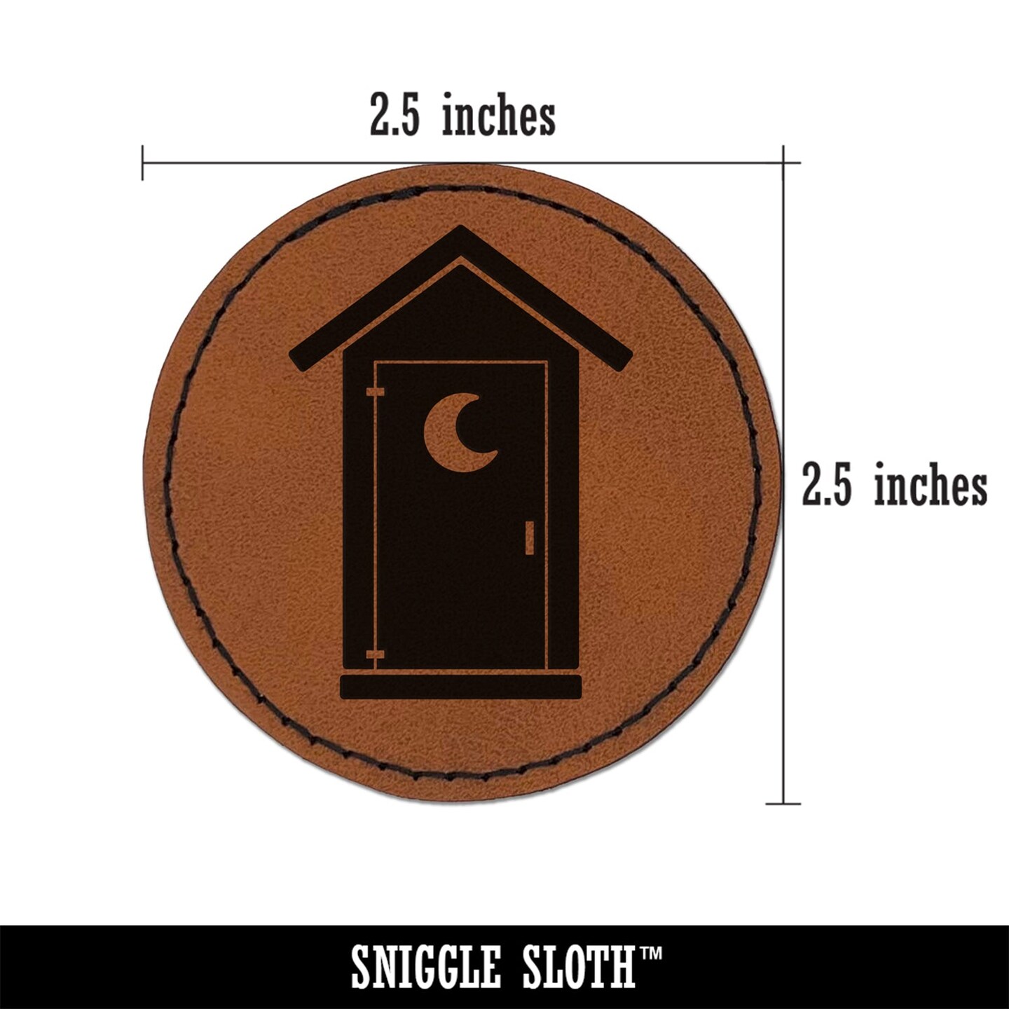 Outhouse Silhouette Toilet Round Iron-On Engraved Faux Leather Patch Applique - 2.5"