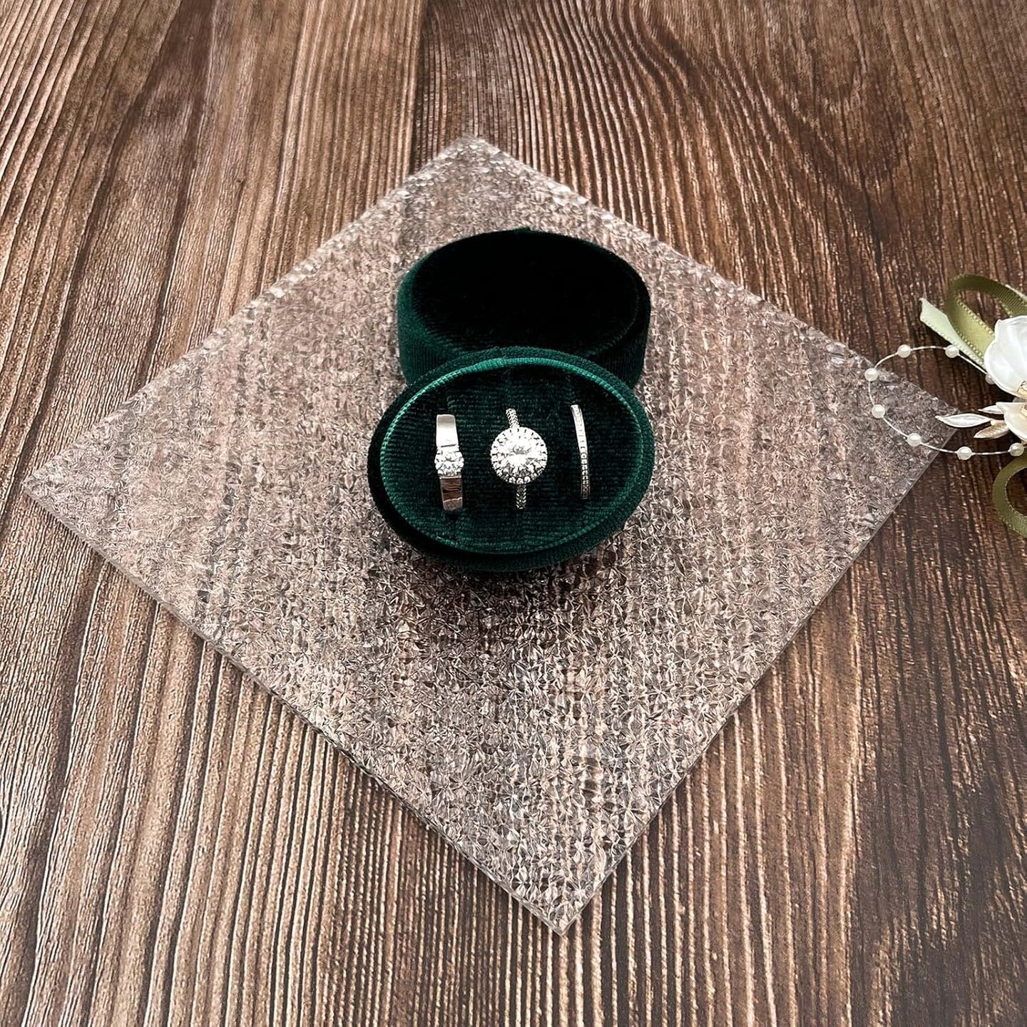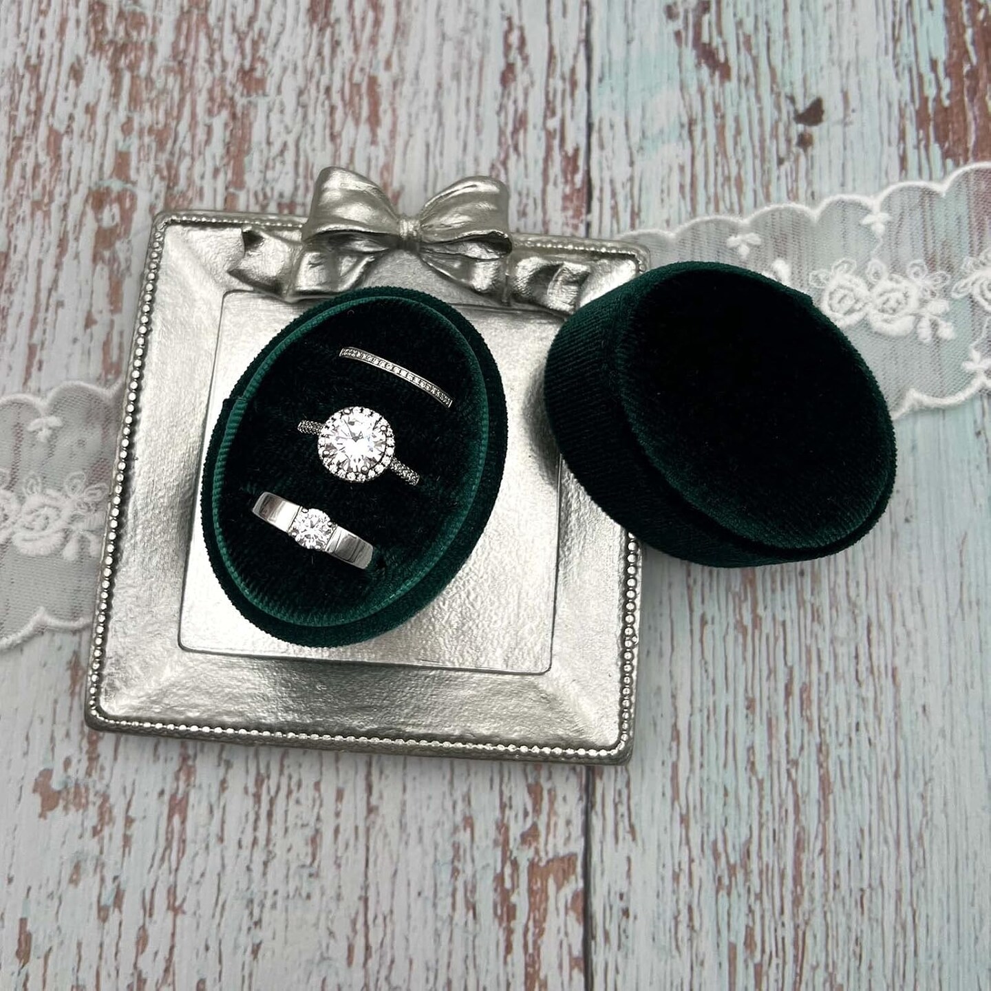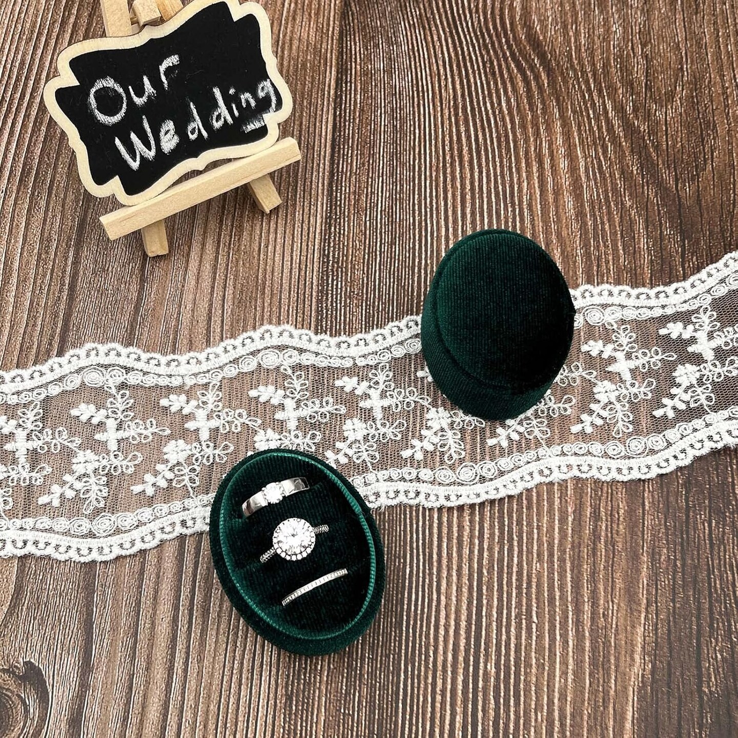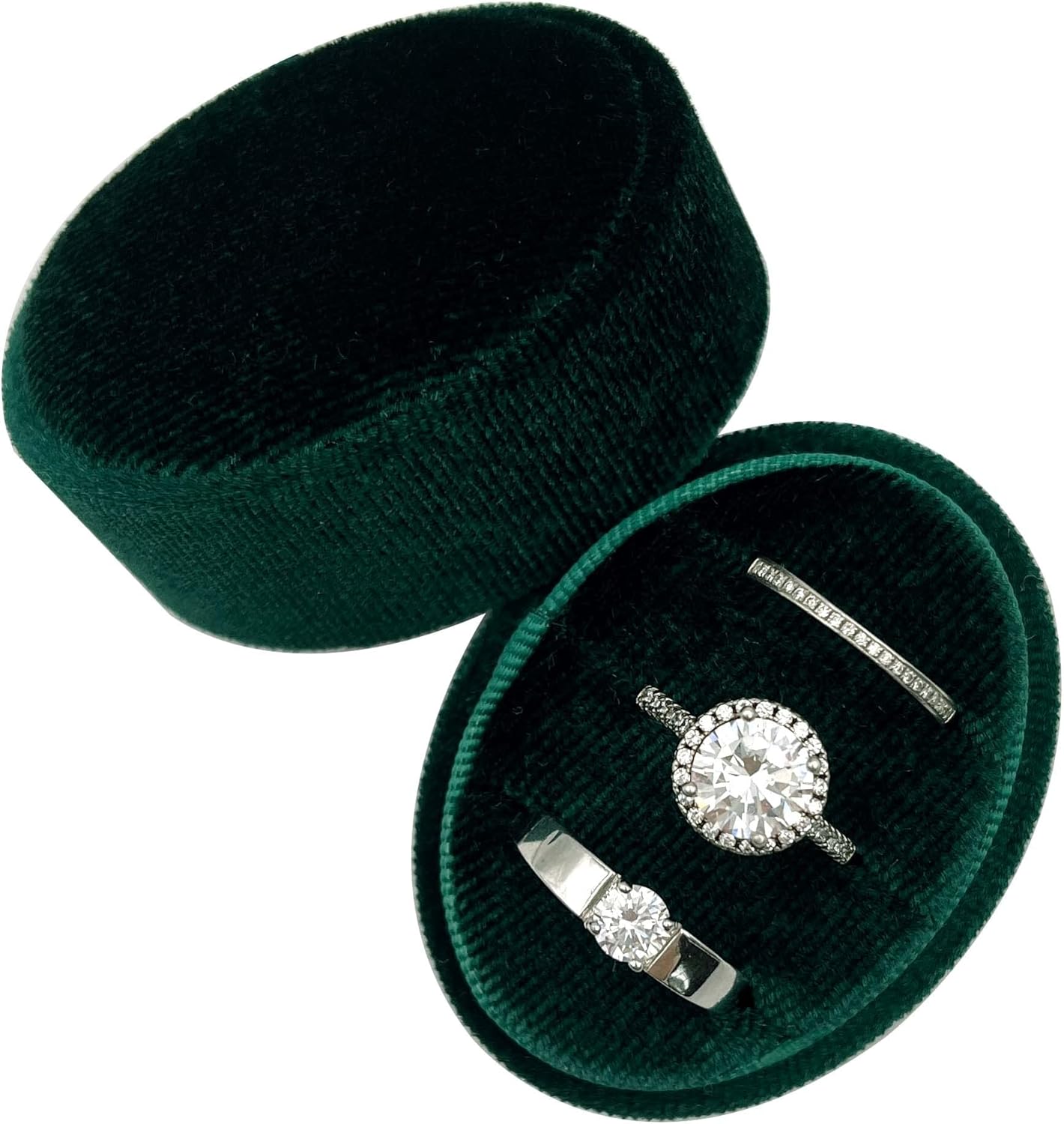 Oval Velvet Ring Box 3 Slots- Premium Wedding Ring Box Vintage Handmade Rings Holder Storage Display Jewelry Storage Case for Wedding Ceremony, Christmas (Emerald)