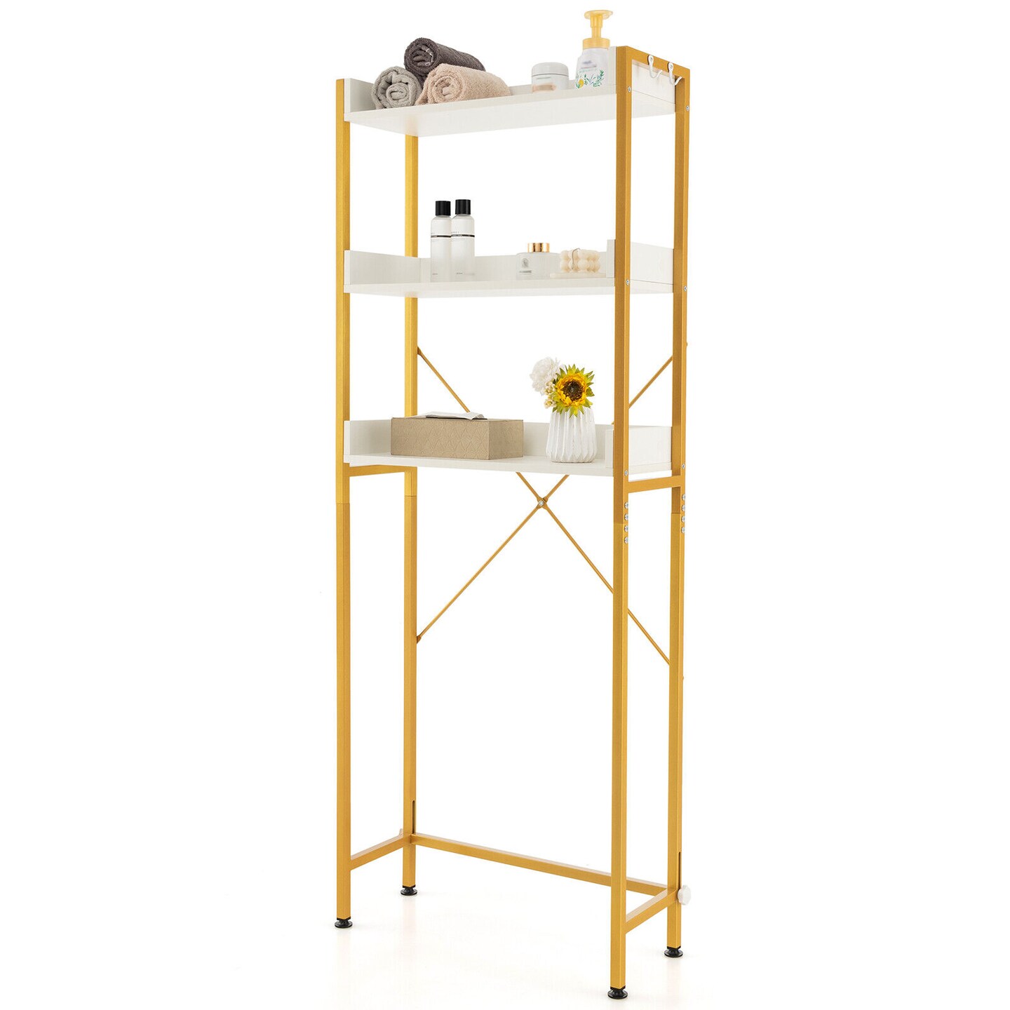 Over The Toilet Storage Rack With Hooks And Adjustable Bottom Bar