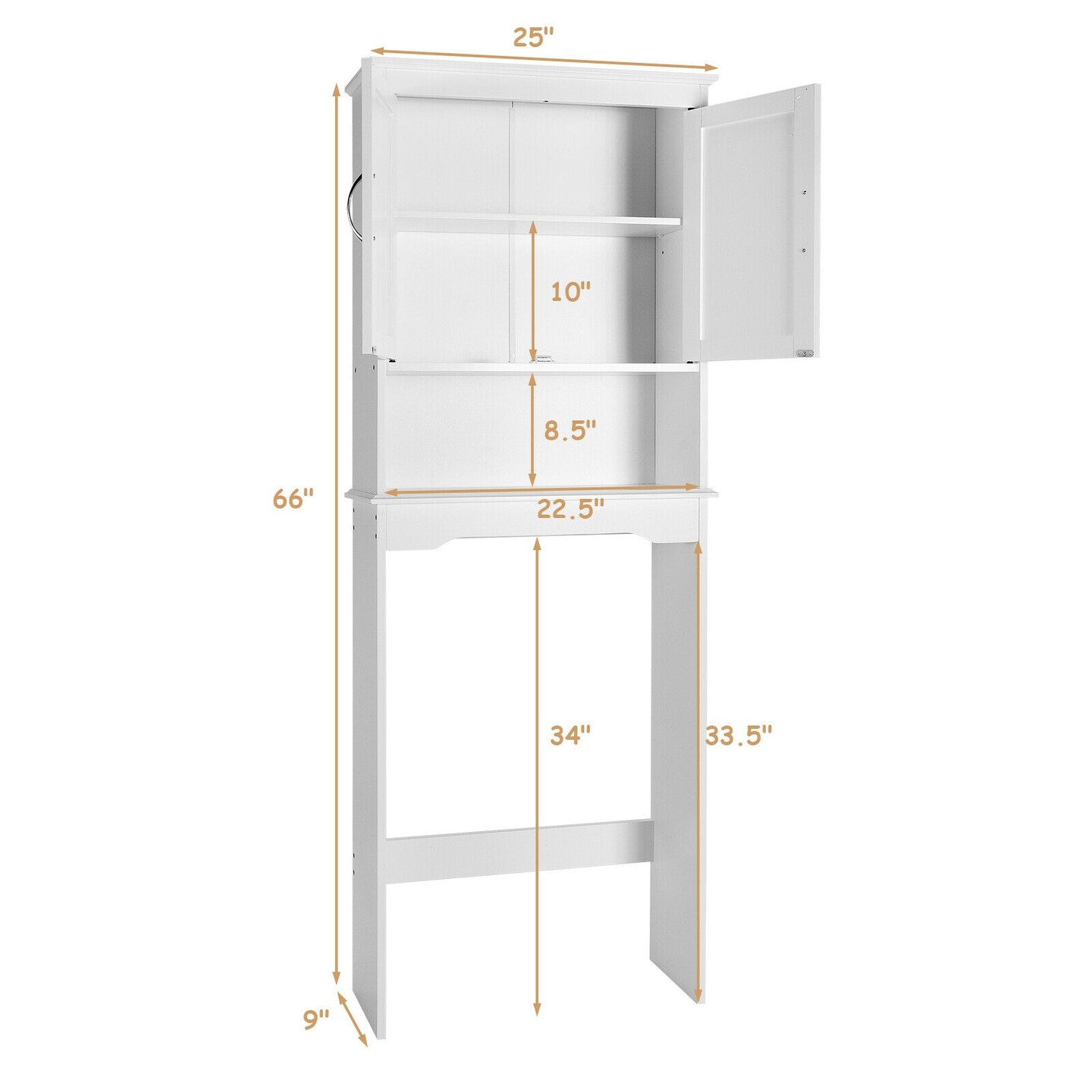 Over Toilet Storage Rack White 2-Door Cabinet Adjustable Shelf Bathroom