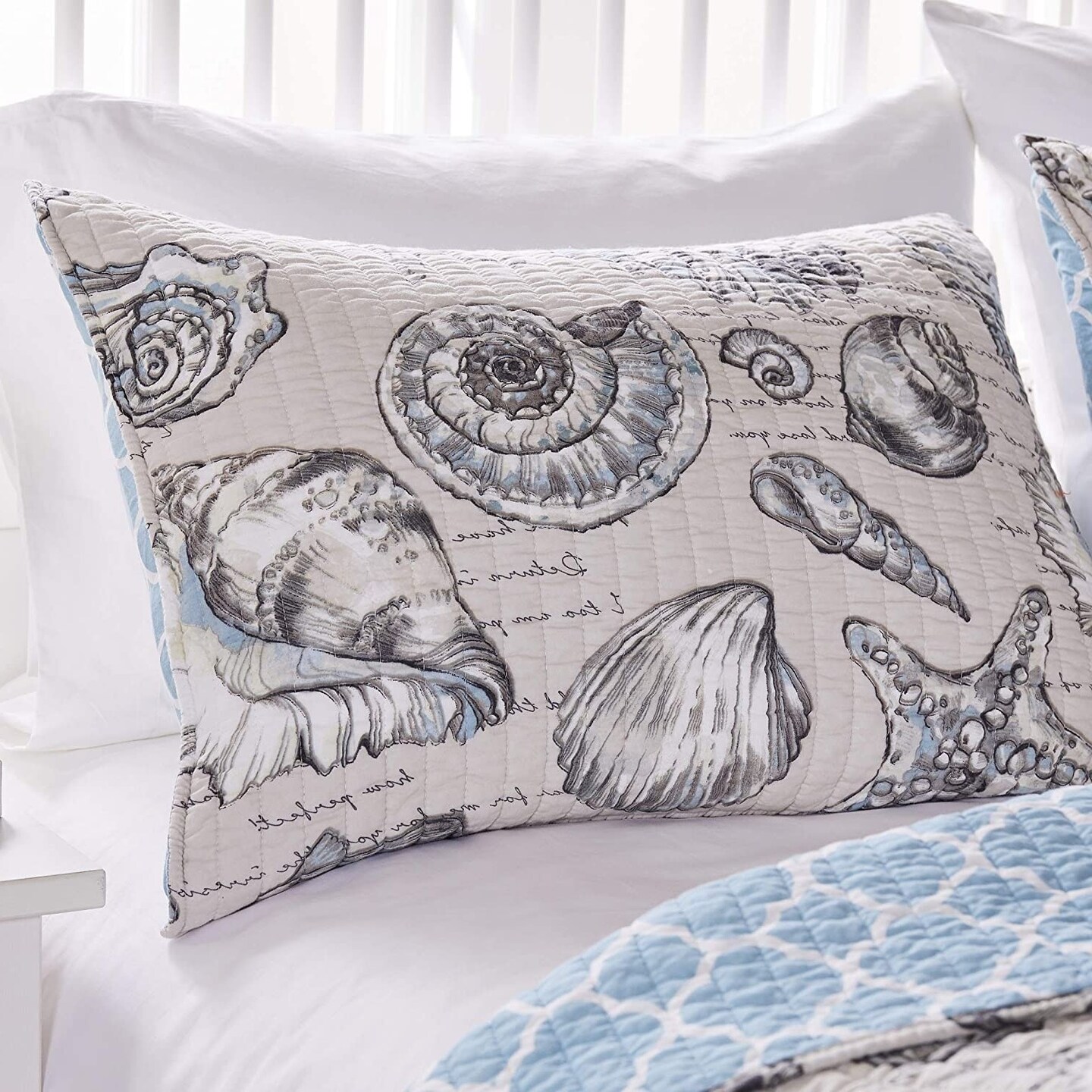 Oversized 3-Piece Microfiber Coastal Quilt Set with Beach Shells and Reversible Design