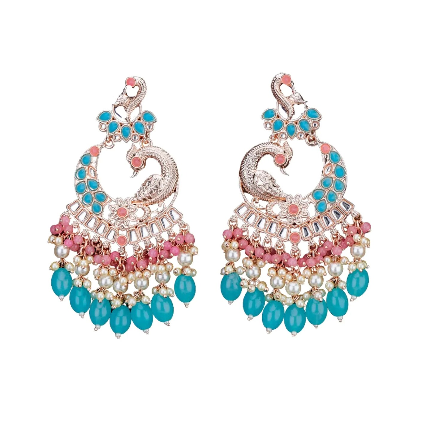 Oversized / Big Indian Jhumka Earrings for Women - Indian Peacock Earrings Ethnic Chandbali Jhumki Kundan & Faux Pearl Beaded Bollywood Style Dangle Earring