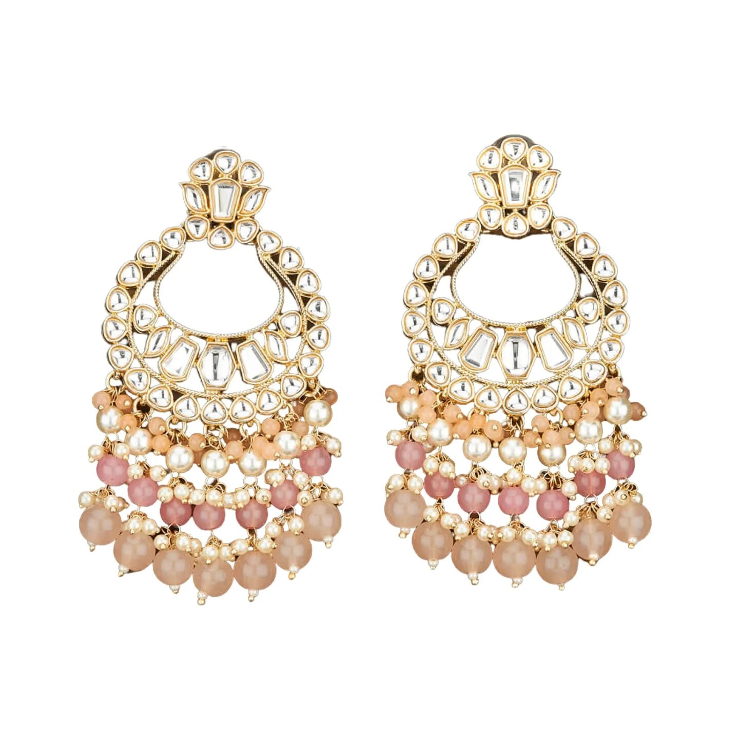 Oversized / Big Indian Jhumka Earrings for Women - Vintage Indian Jhumki Ethnic Chandbali Earrings Faux Kundan & Pearl Beaded Bollywood Style Dangle Earring Jewelry for Bride | Birthday Gift for Her
