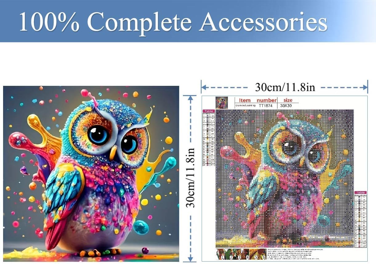 Owl Diamond Painting Kits for Adults, Owl 5D Diamond Art Kits, Full Drill DIY Crafts for Adults Diamond Dots Owl by Number Kits