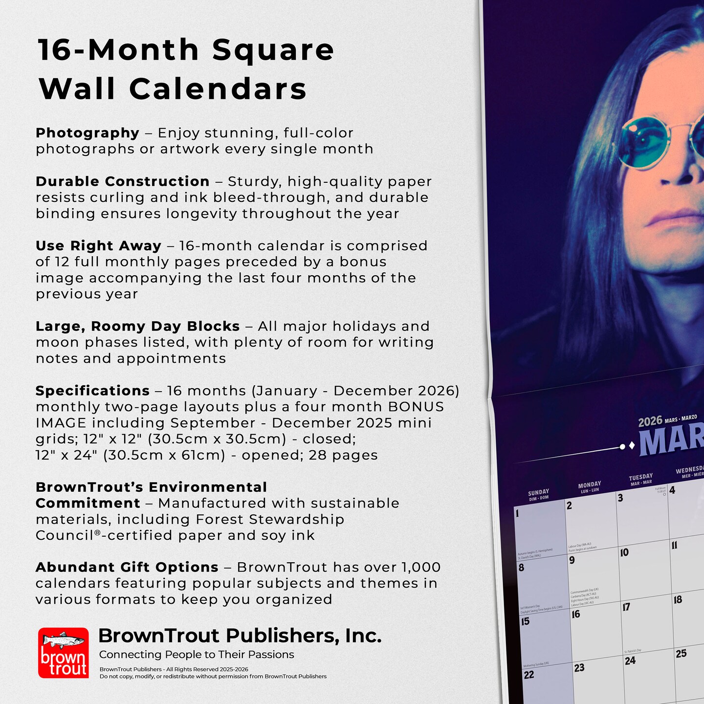 Ozzy Osbourne OFFICIAL | 2026 12 x 24 Inch (Hanging) Monthly Square Wall Calendar