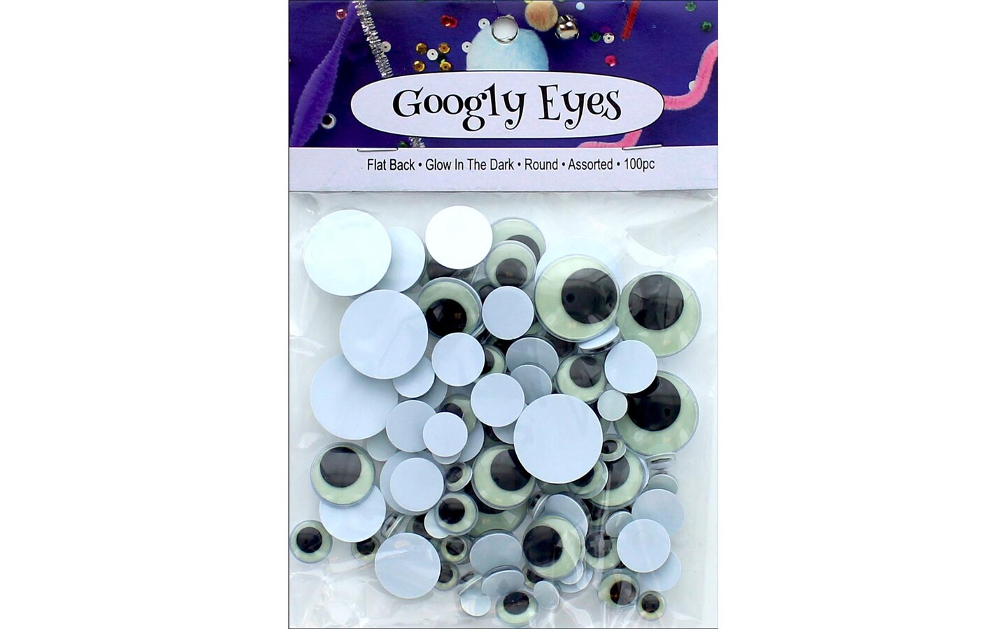 PA Ess Flat Back Eyes Round Astd 100pc Glow/Dark