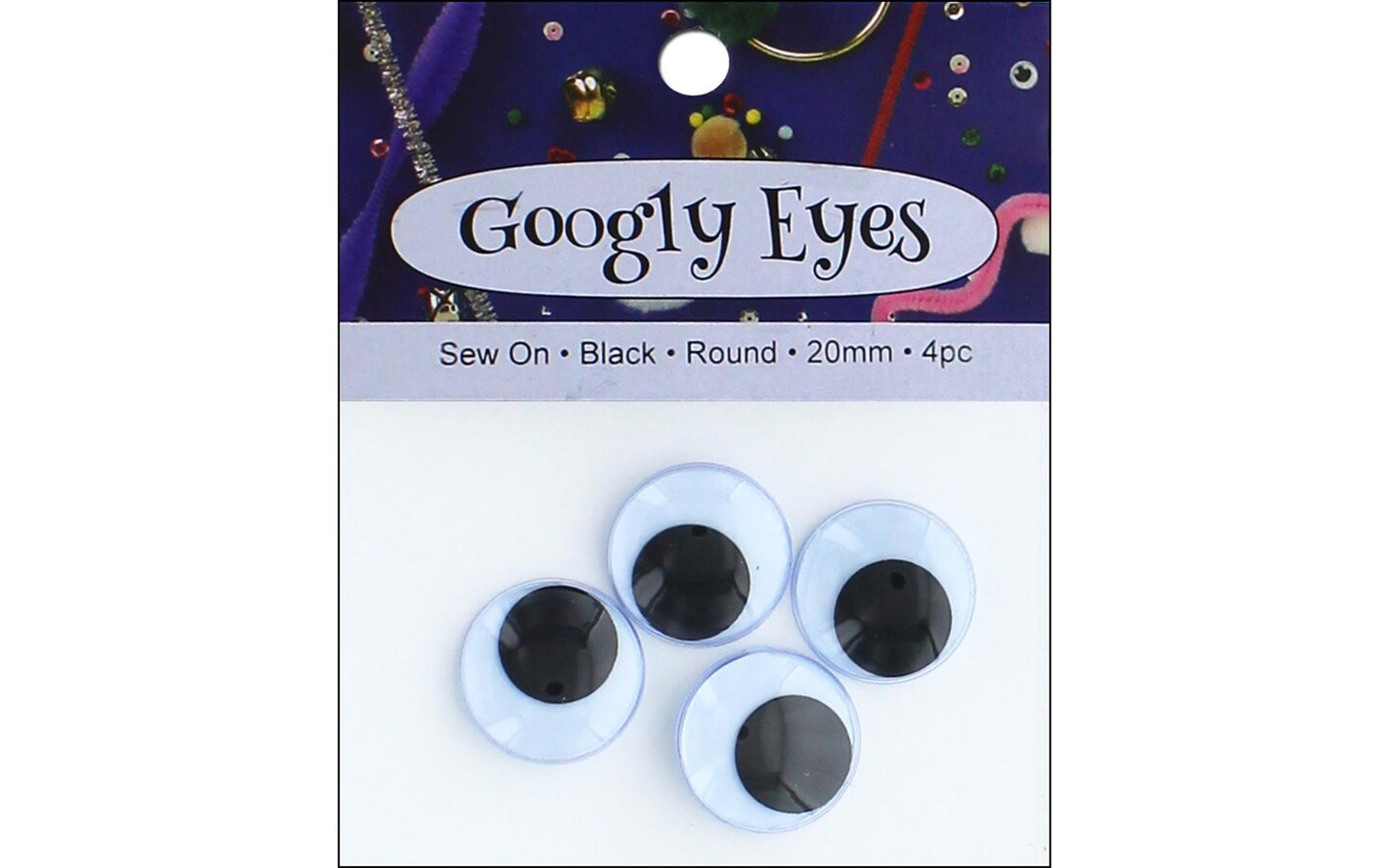 PA Ess Flat Sew On Back Eyes Round 20mm 4pc Black