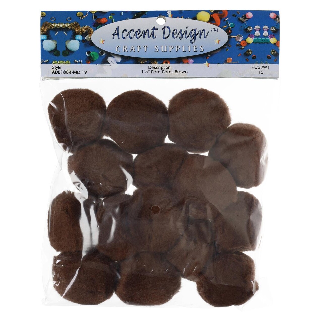 PA Essentials Pom Pom Balls 1.5" 15pc Brown – Arts and Crafts Supplies, Puff Balls for DIY Projects, Pompoms for Crafting, Pom Pom Decorations, Kids Craft Accessories