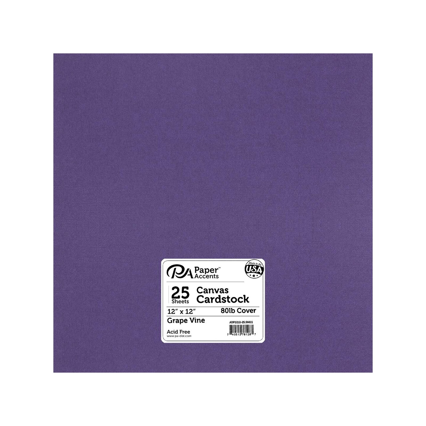 PA Paper Accents Canvas Cardstock 12" x 12" Grape Vine, 80lb colored cardstock paper for card making, scrapbooking, printing, quilling and crafts, 25 piece pack