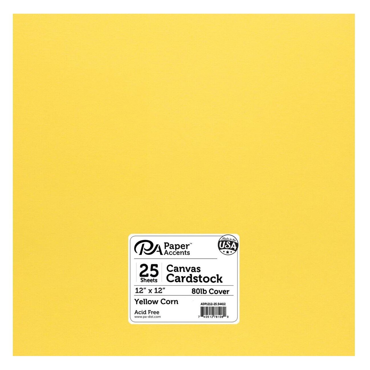 PA Paper Accents Canvas Cardstock 12" x 12" Yellow Corn, 80lb colored cardstock paper for card making, scrapbooking, printing, quilling and crafts, 25 piece pack