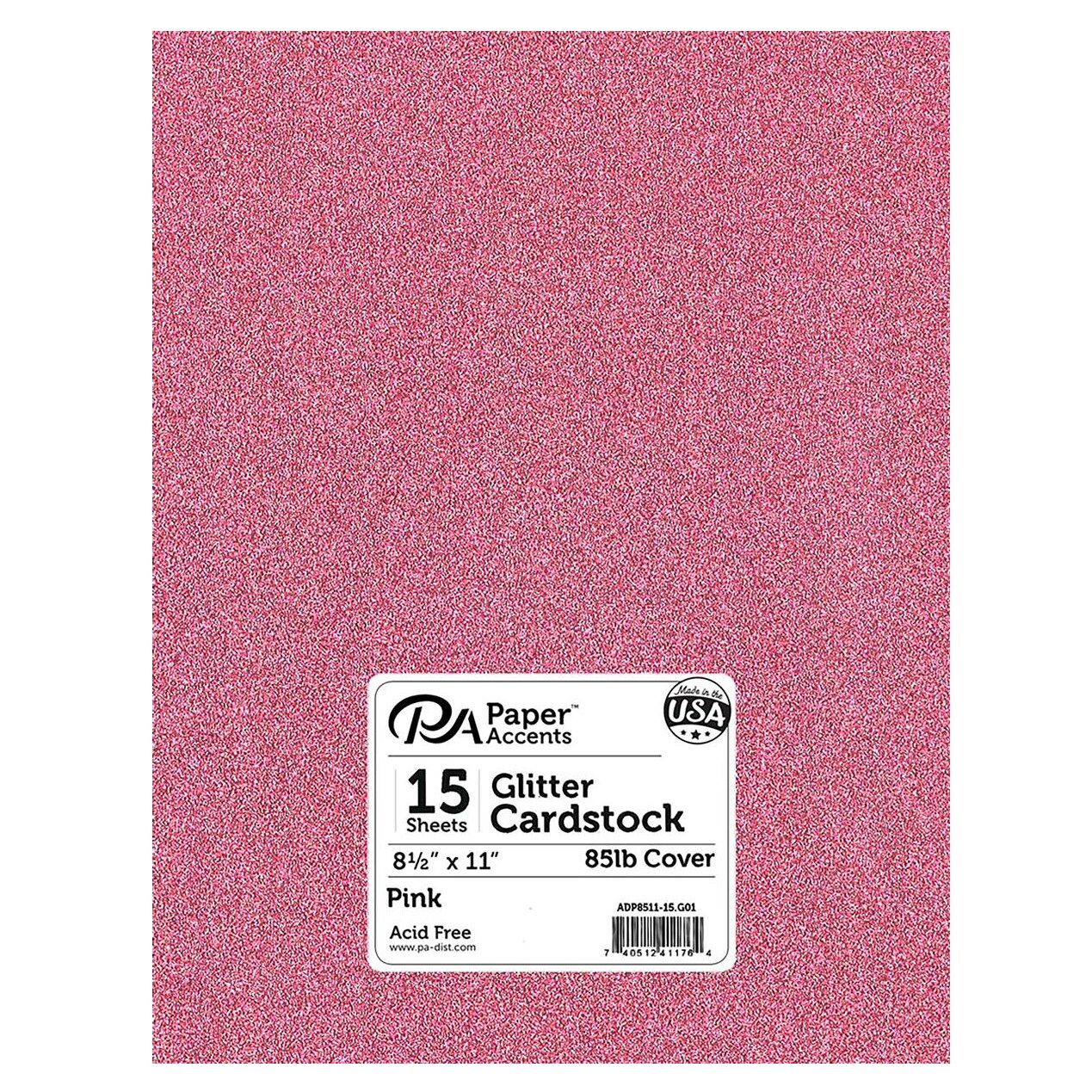 PA Paper Accents Glitter Cardstock 8.5" x 11" Pink, 85lb colored cardstock paper for card making, scrapbooking, printing, quilling and crafts, 15 piece pack