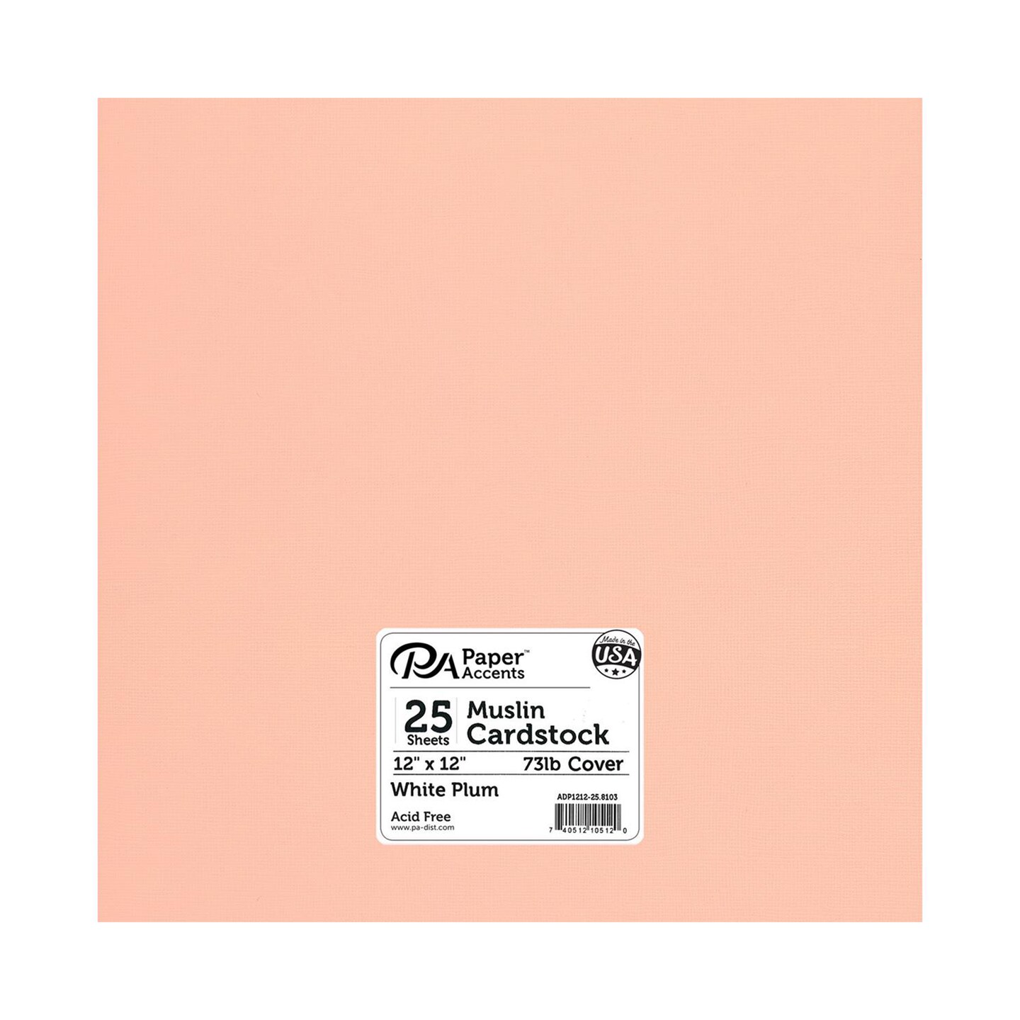 PA Paper Accents Muslin Cardstock 12" x 12" White Plum, 73lb colored cardstock paper for card making, scrapbooking, printing, quilling and crafts, 25 piece pack