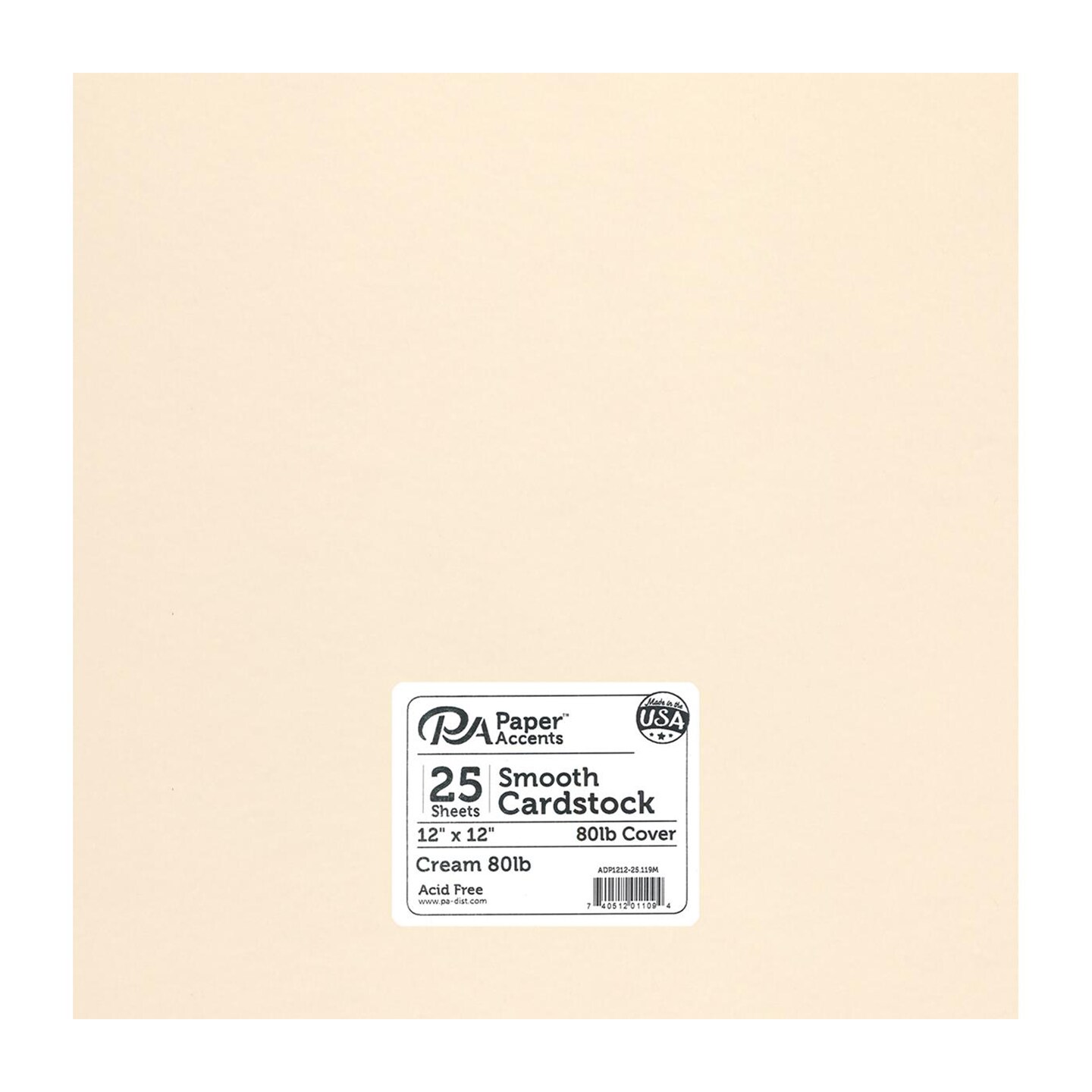 PA Paper Accents Smooth Cardstock 12" x 12" Cream, 80lb colored cardstock paper for card making, scrapbooking, printing, quilling and crafts, 25 piece pack