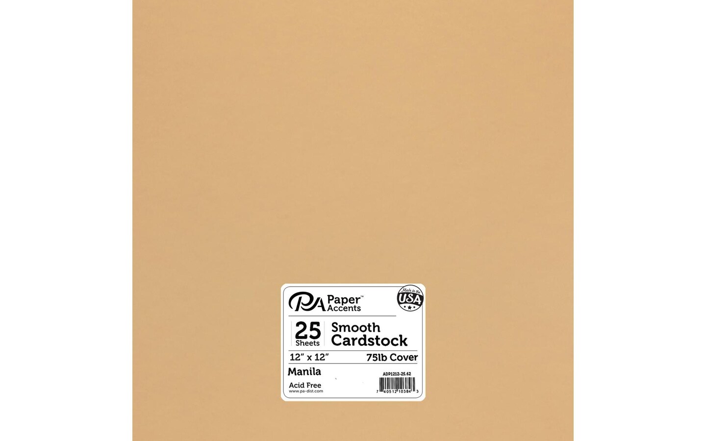 PA Paper Accents Smooth Cardstock 12" x 12" Manila, 75lb colored cardstock paper for card making, scrapbooking, printing, quilling and crafts, 25 piece pack