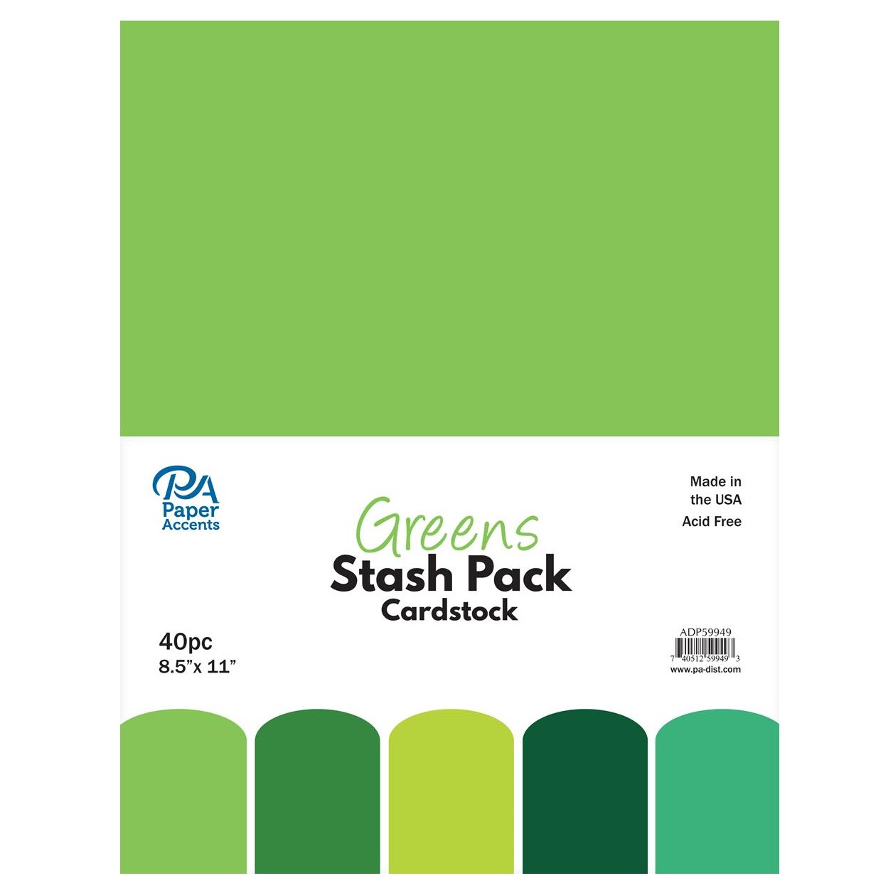 PA Paper Accents Stash Pack Cardstock Pack 8.5" x 11" Greens, colored cardstock paper for card making, scrapbooking, printing, quilling and crafts, 65lb., 40 pieces