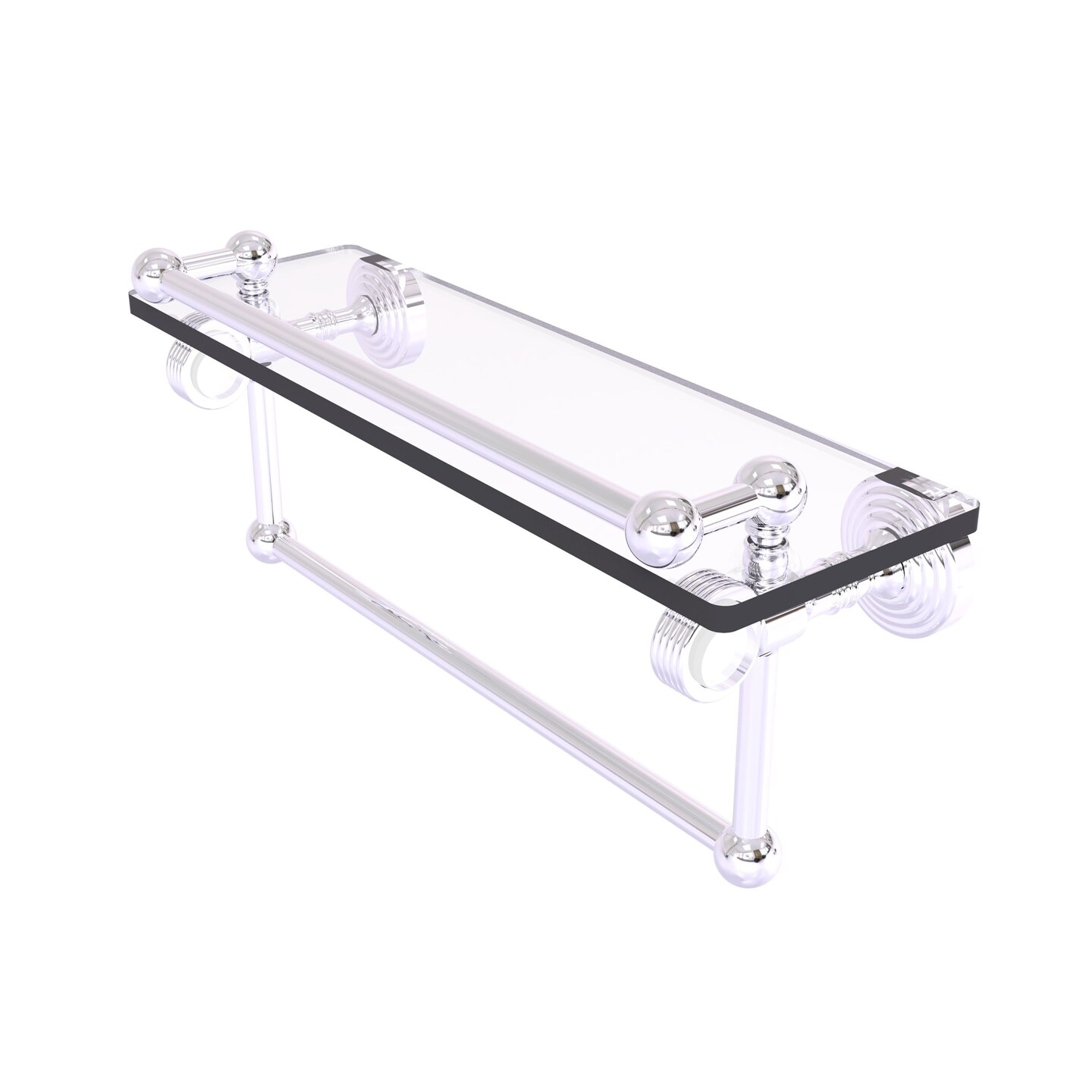 Pacific Grove Collection 16 Inch Gallery Glass Shelf With Towel Bar And Groovy Accents - Polished Chrome