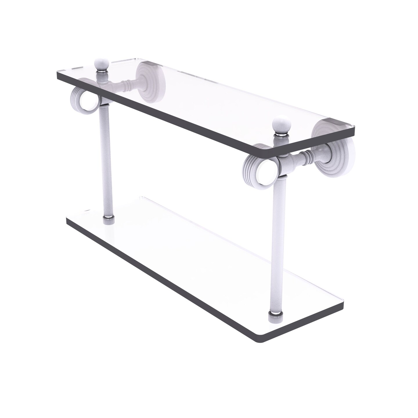 Pacific Grove Collection 16 Inch Two Tiered Glass Shelf With Groovy Accents - Matte White