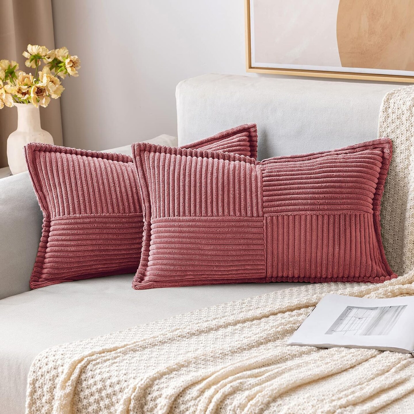 Pack of 2 Boho Striped Corduroy Pillow Covers