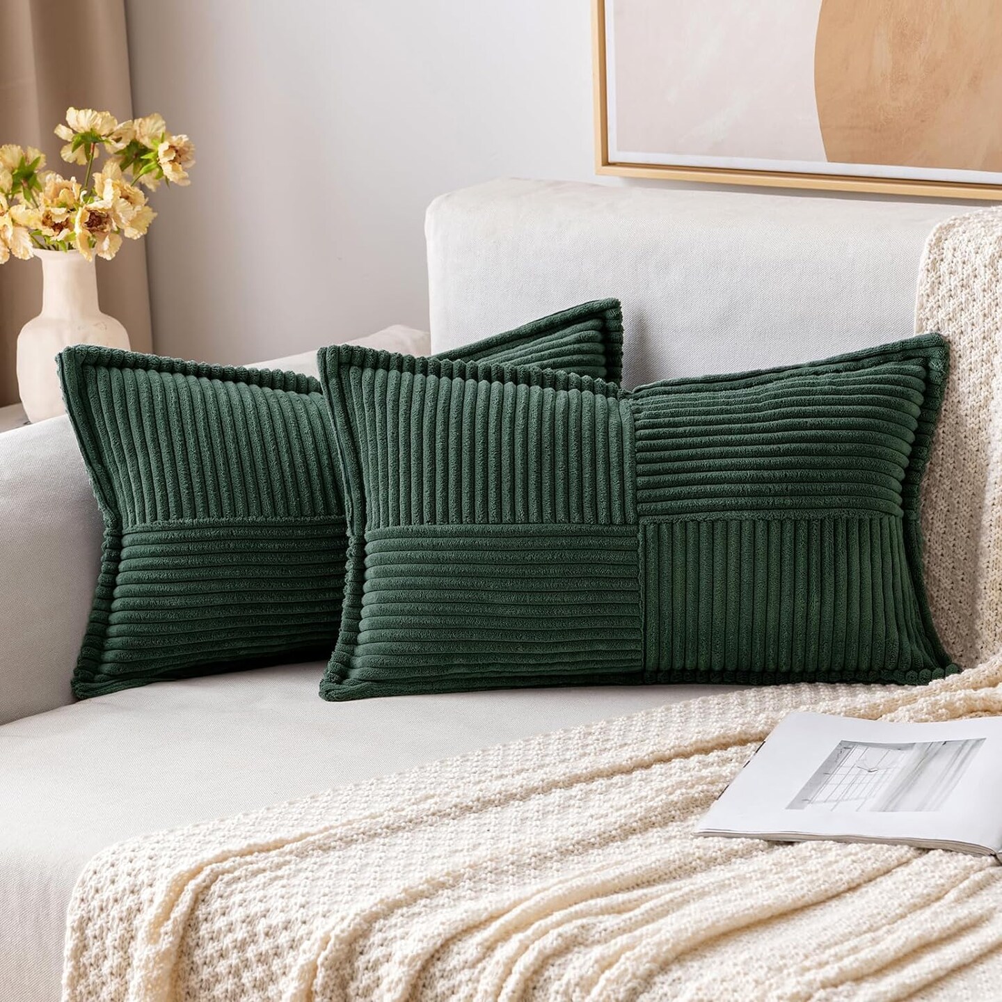 Pack of 2 Boho Striped Corduroy Pillow Covers
