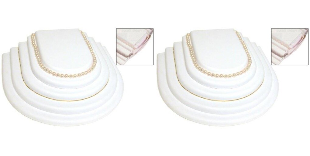 Pack of 2 White Faux Leather Pearl Necklace Tiered Display Showcases Countertops