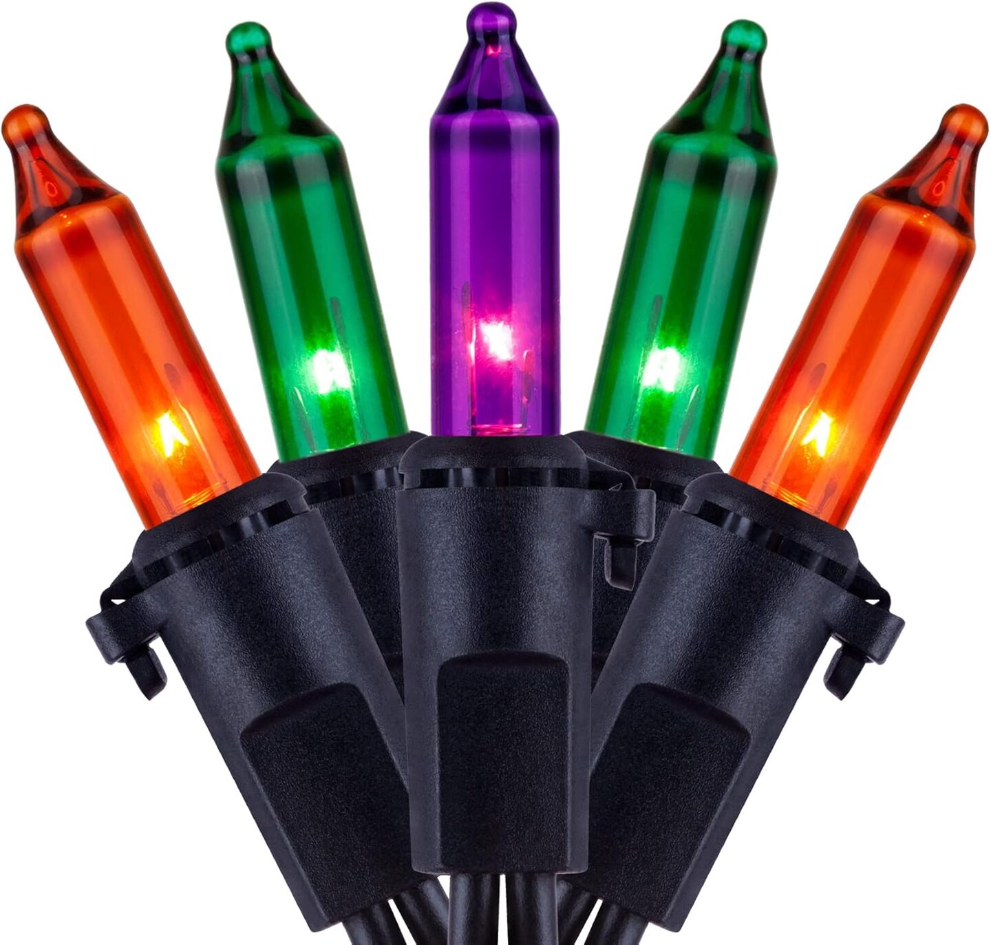Pack of 200 Orange Green & Purple Halloween Lights with Black Wire