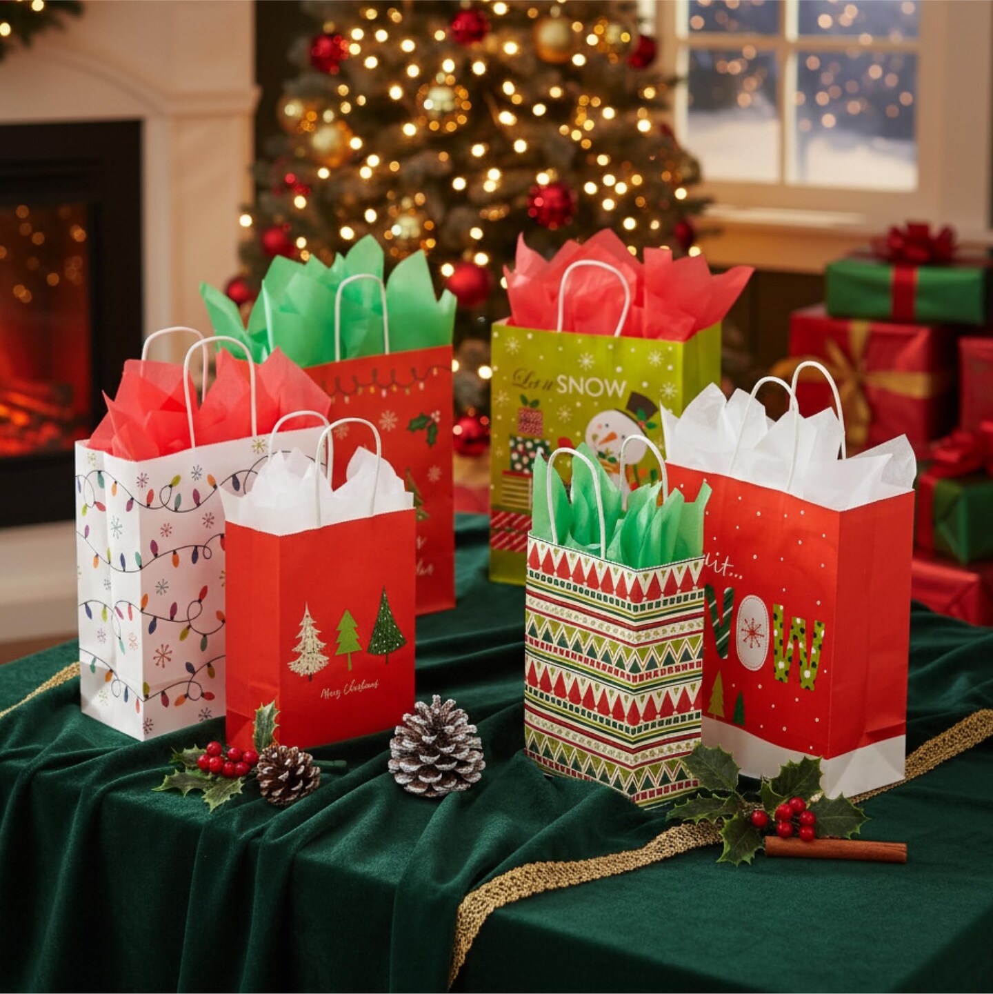 Pack of 24 Christmas Gift Bags Assorted Sizes With Tissue paper (8 Large 13", 8 Medium 11", 8 Small 9")
