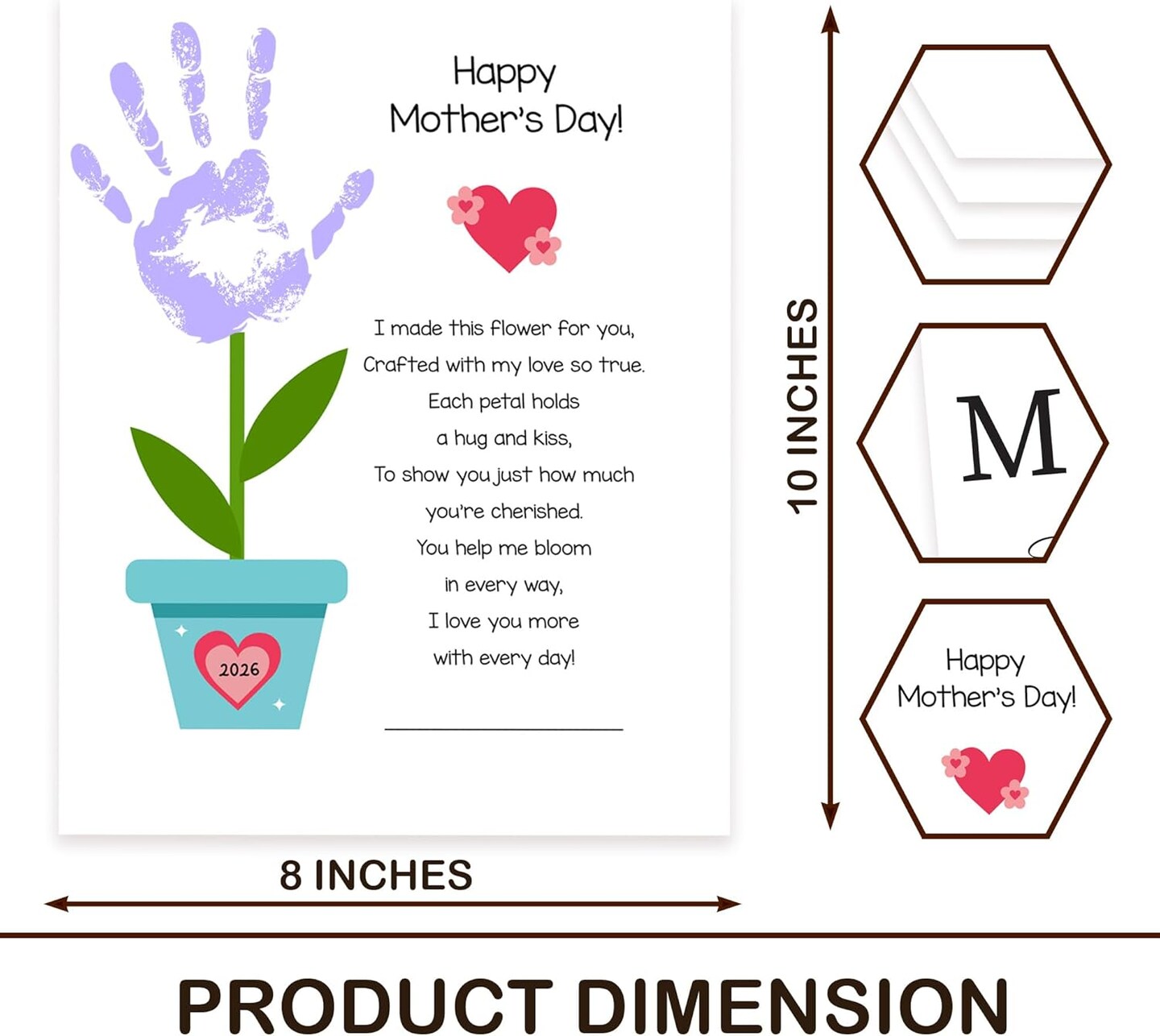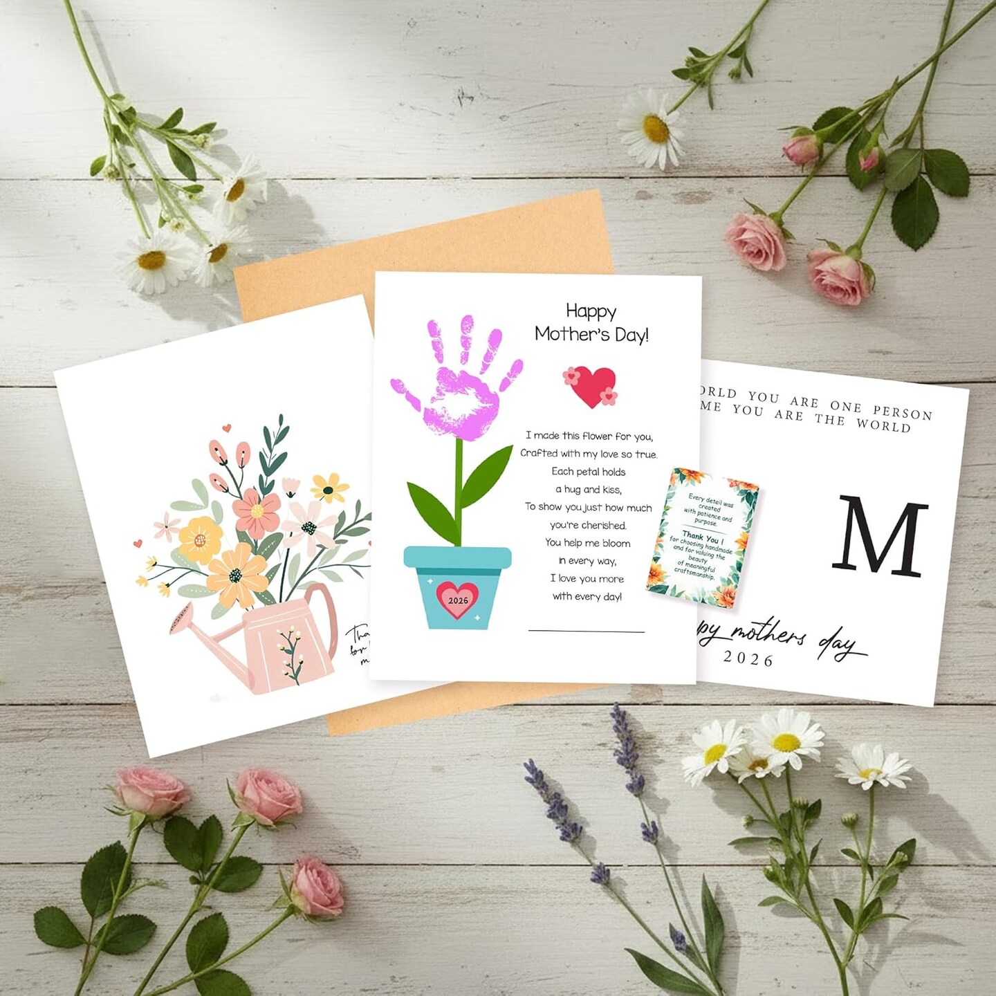 Pack of 3 Handprint Floral Bouquet DIY Cards – Unique Mother’s Day Gifts from Kids, “Best Mom Ever” Keepsake, Handprint Craft for Mom, Daughter or Son