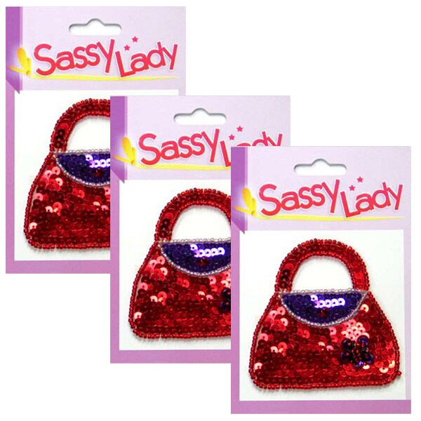 Pack of 3 Red Flower Purse Sassy Lady Sequin Applique