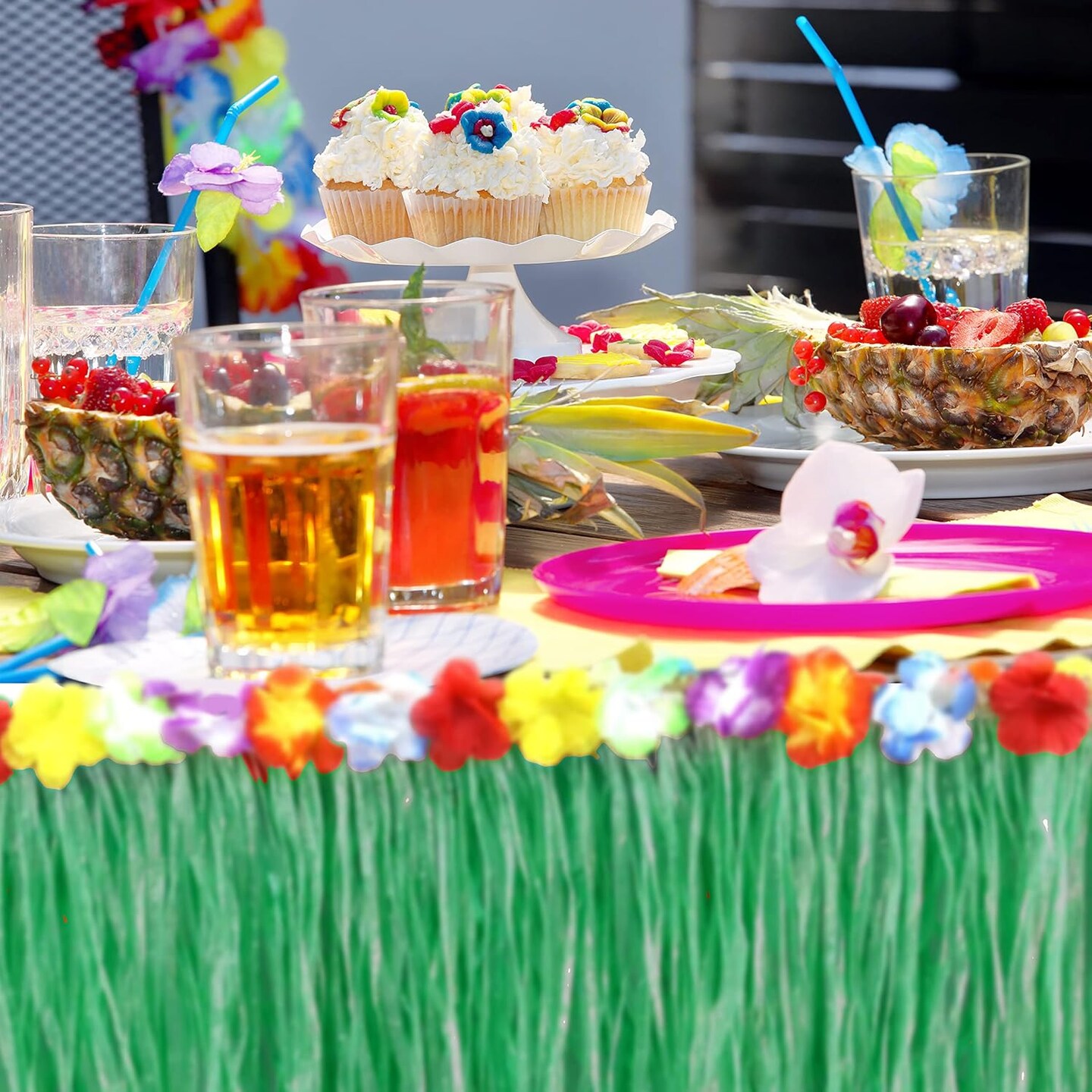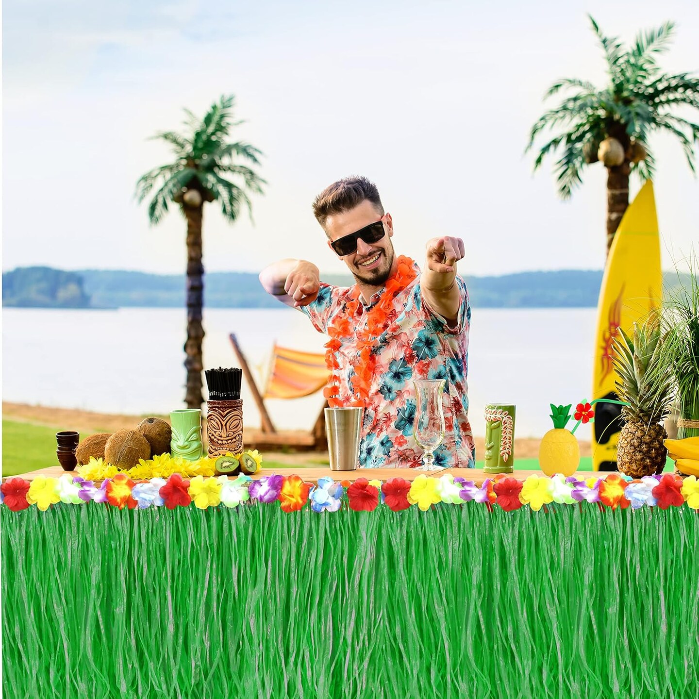 Pack of 4 - 9 ft X29 Green Grass Table Skirt