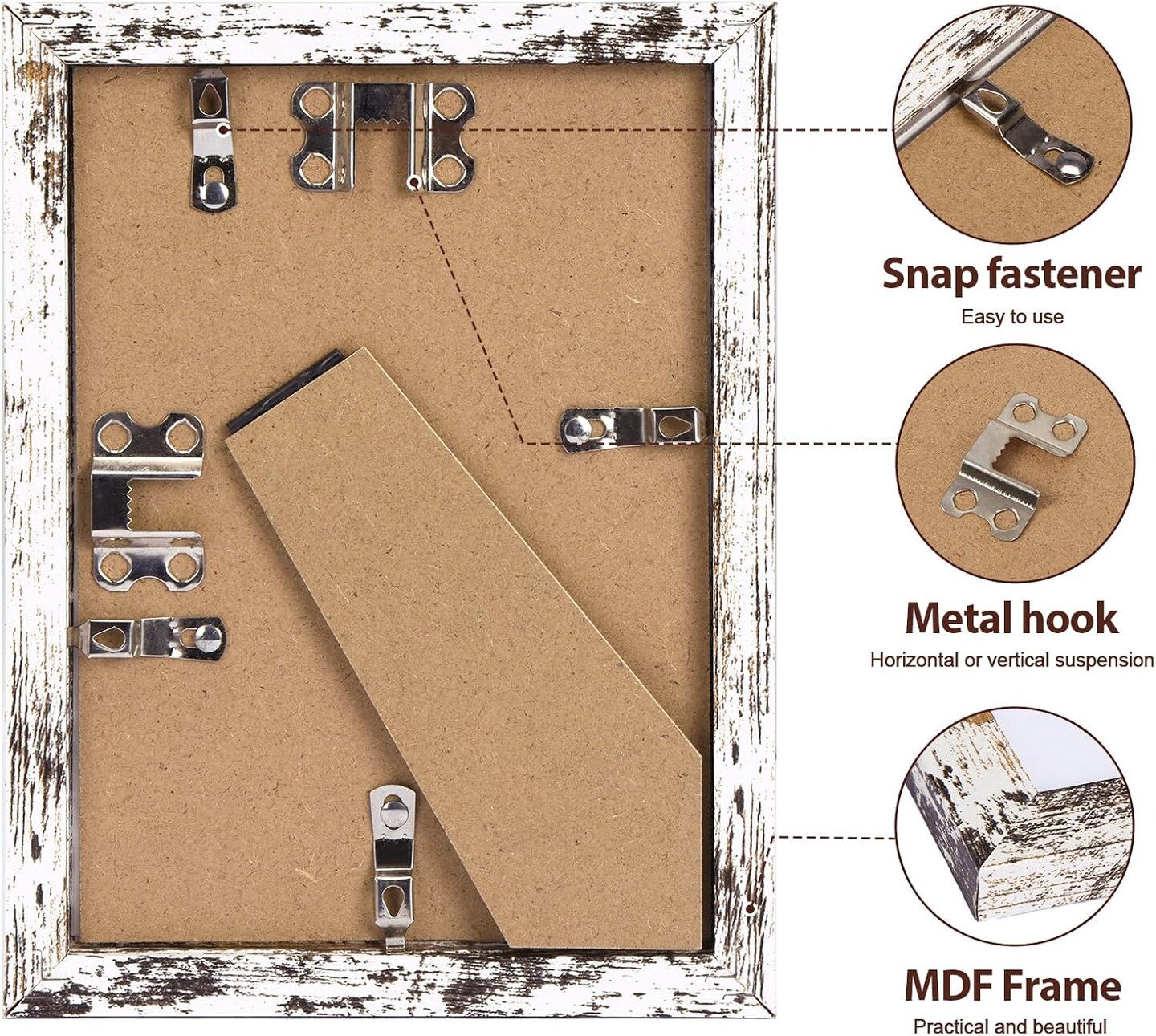 Pack of 5 - 5x7 Picture Frames with White Wood Grain and Glass Cover