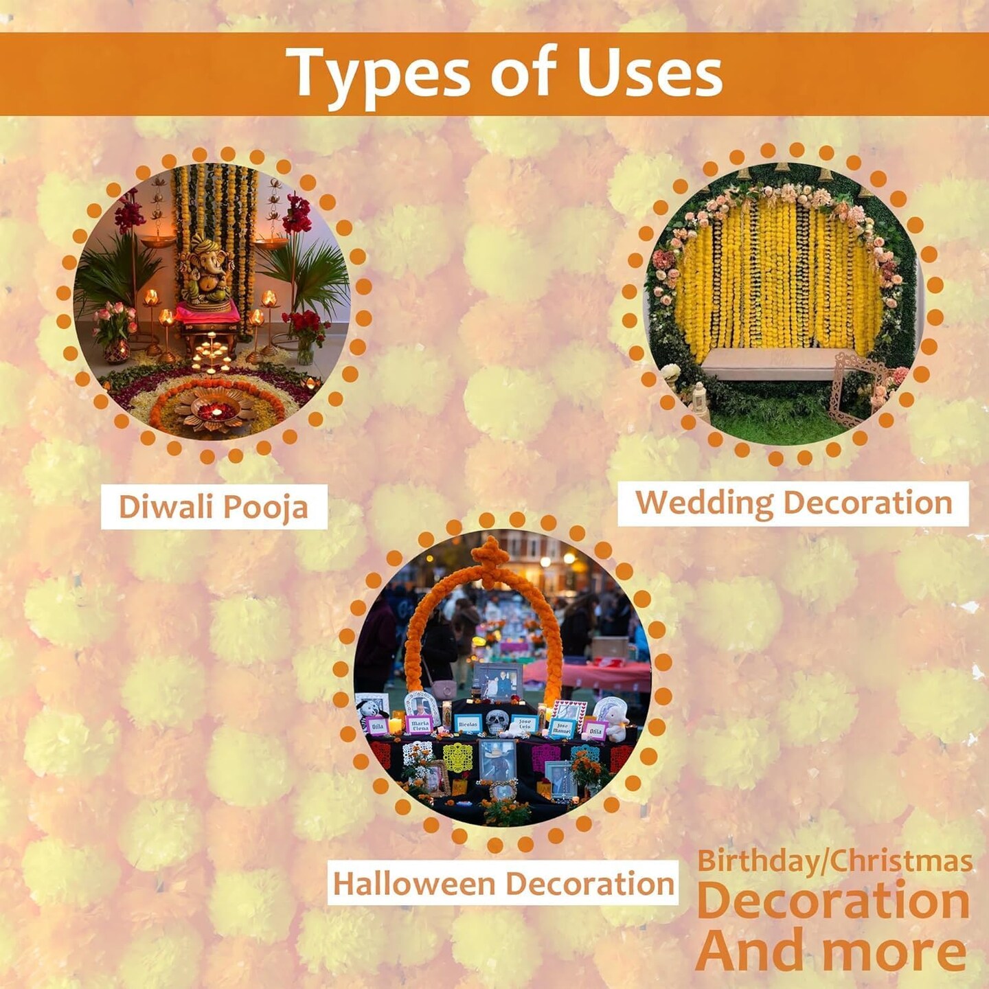 Pack of 5 Artificial Marigold Flower Garland Party Decoration