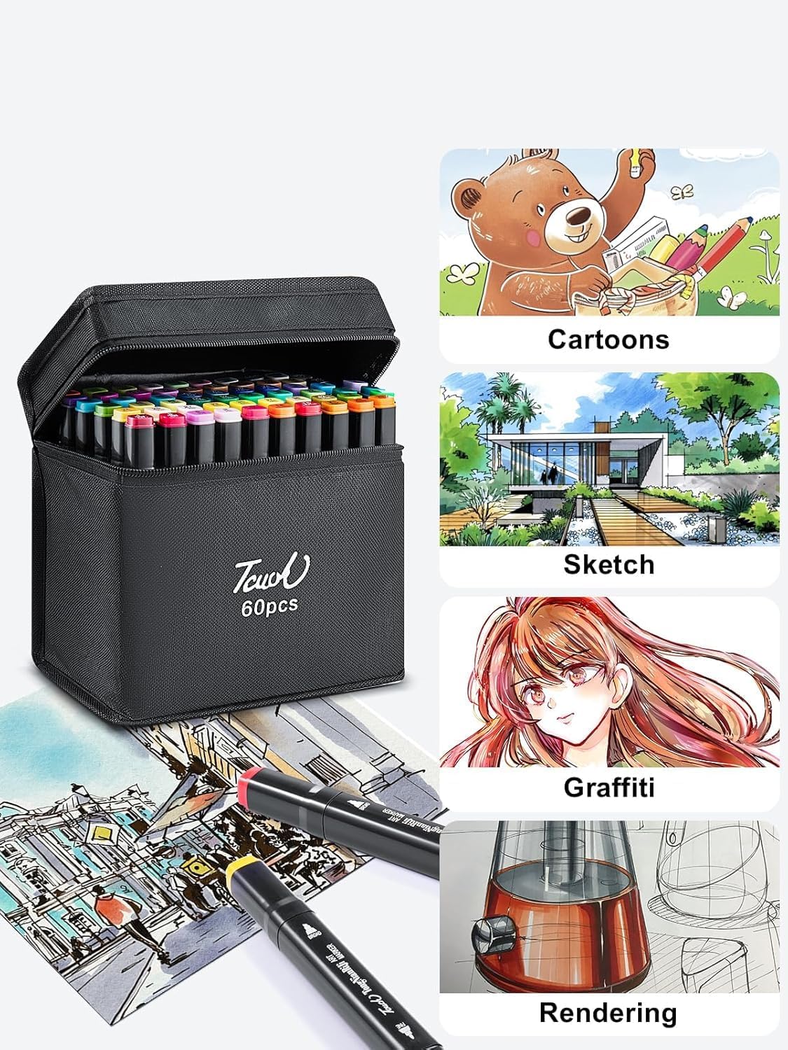 Pack of 60 Colors Alcohol Based Markers