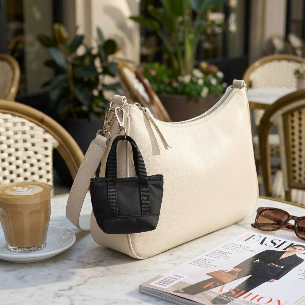 packlab Micro Nano Tote Keychain - Black Mini Tote Bag Coin Purse for Cards, Lip Balm & Everyday Essentials