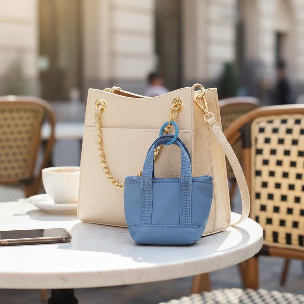 packlab Micro Nano Tote Keychain - Blue Mini Tote Bag Coin Purse for Cards, Lip Balm & Everyday Essentials