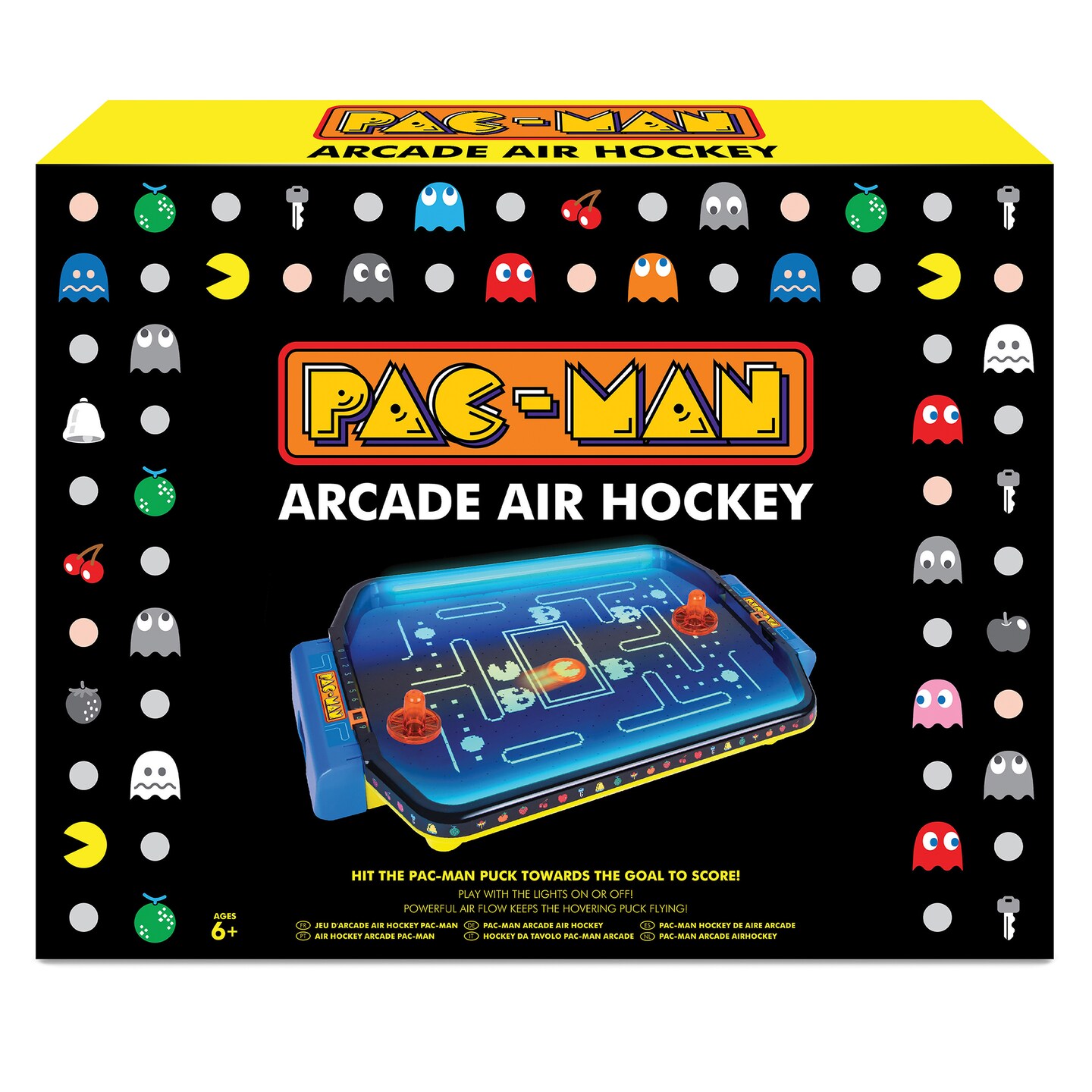 Pac-Man: Arcade Air Hockey - Premium Series, Glow-In-The-Dark Tabletop Game, Motorized Air Cushion, Neon Colors, Licensed, Adults & Kids 6+, 2 Players
