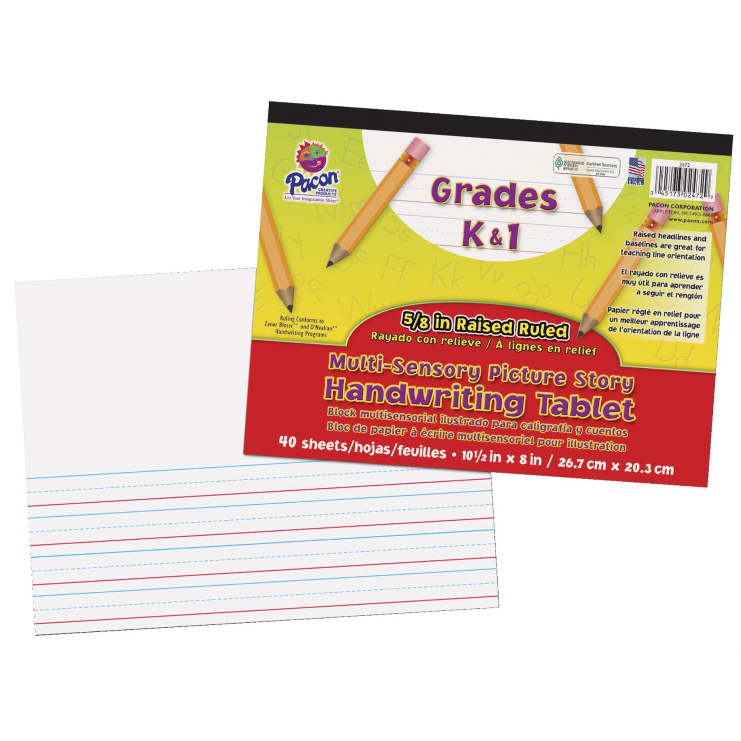 Pacon Raised Rule Multi Sensory Picture Story Tablet, 8 x 10-1/2 Inches, 40 Sheets
