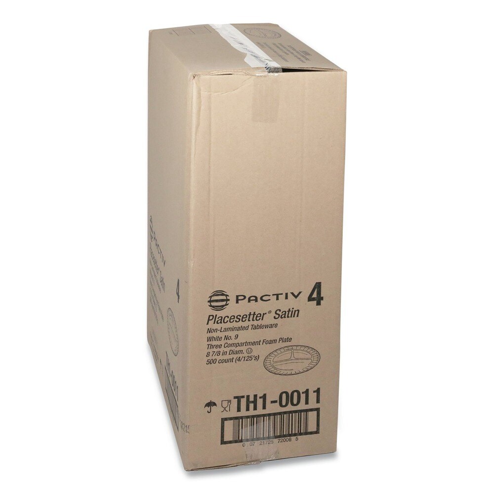 Pactiv Corp. Placesetter 9 in. Diameter 3-Compartment Plate Satin Non-Laminated Foam Dinnerware - White (500/Carton)