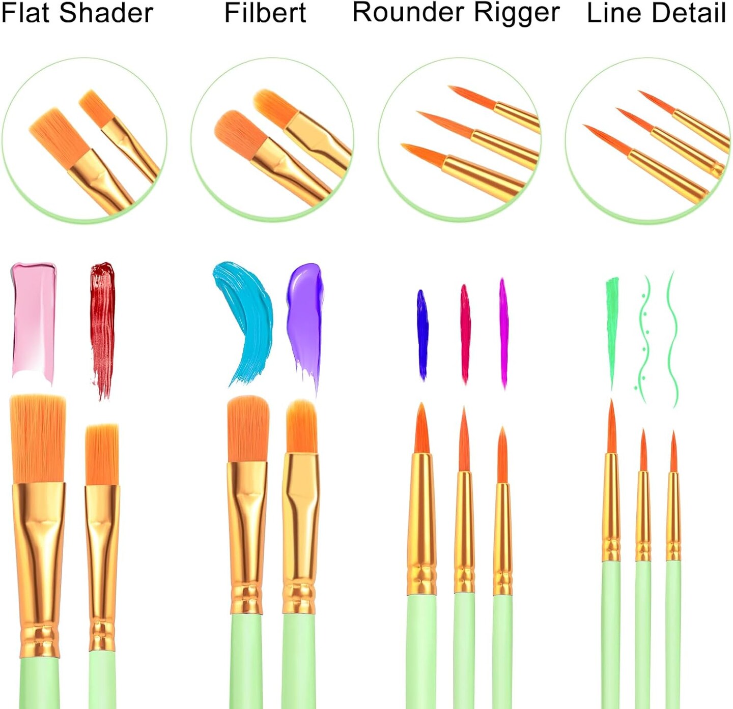 Paint Brushes Set,24 Packs 240 Pcs Acrylic Paint Brush Set,Acrylic Oil Watercolor, Face Nail Art, Miniature Detailing,Rock Painting,Painting Artist Professional Kits(Green)