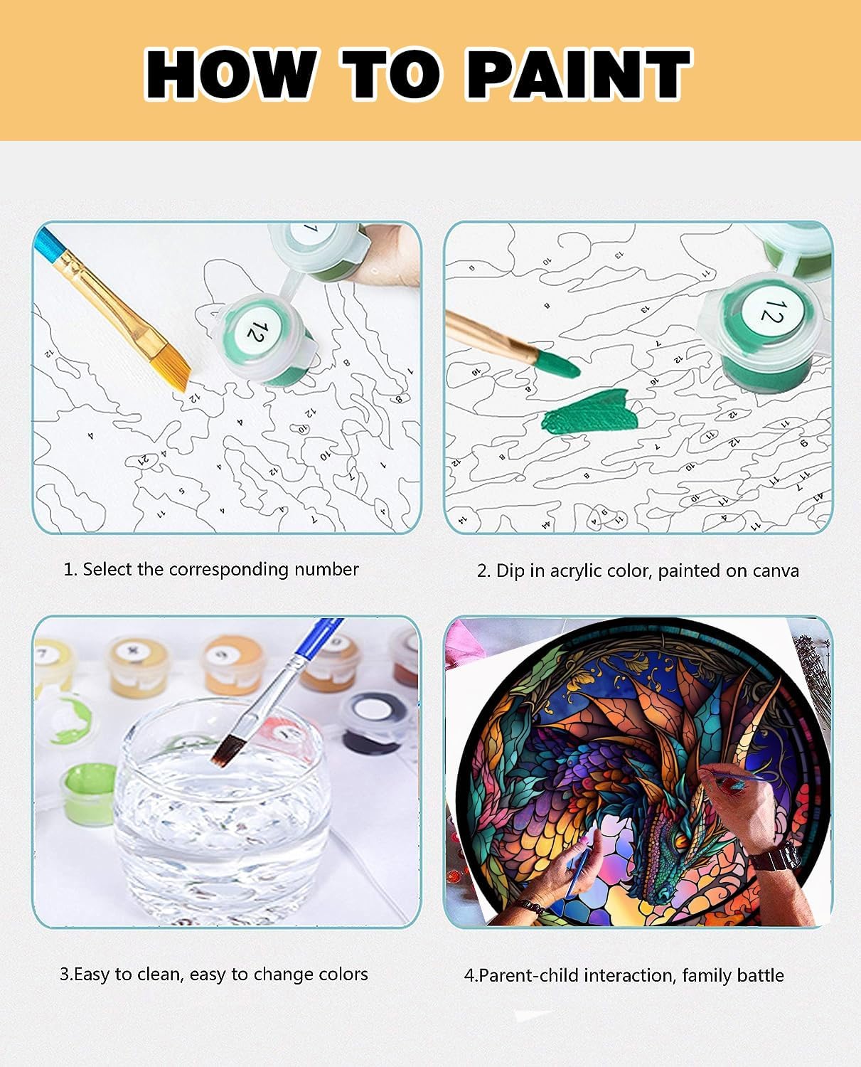 Paint By Number Colorful Dragon Kit for Adults Beginners – DIY Acrylic Canvas Painting Set for Home Wall Decor & Gift, 13.8x13.8 Inch