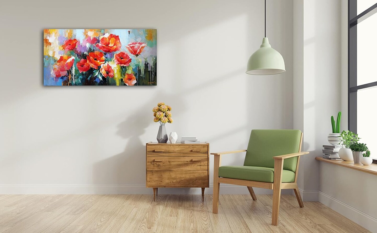 Paint by Number for Adults Beginner Students Canvas ONLY, Ideal Gift Choice for Birthday,Easter Day,Mother's day, Any Festival.DIY Acrylic Painting Kit for Room Decor-Red Flowers 12x24 inch