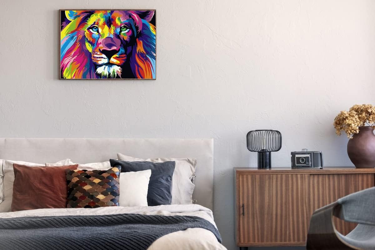 Paint by Number Kit for Kids & Adults Beginner – DIY Acrylic Lion Painting on Framed Canvas, Home Wall Decor 12x16 Inch
